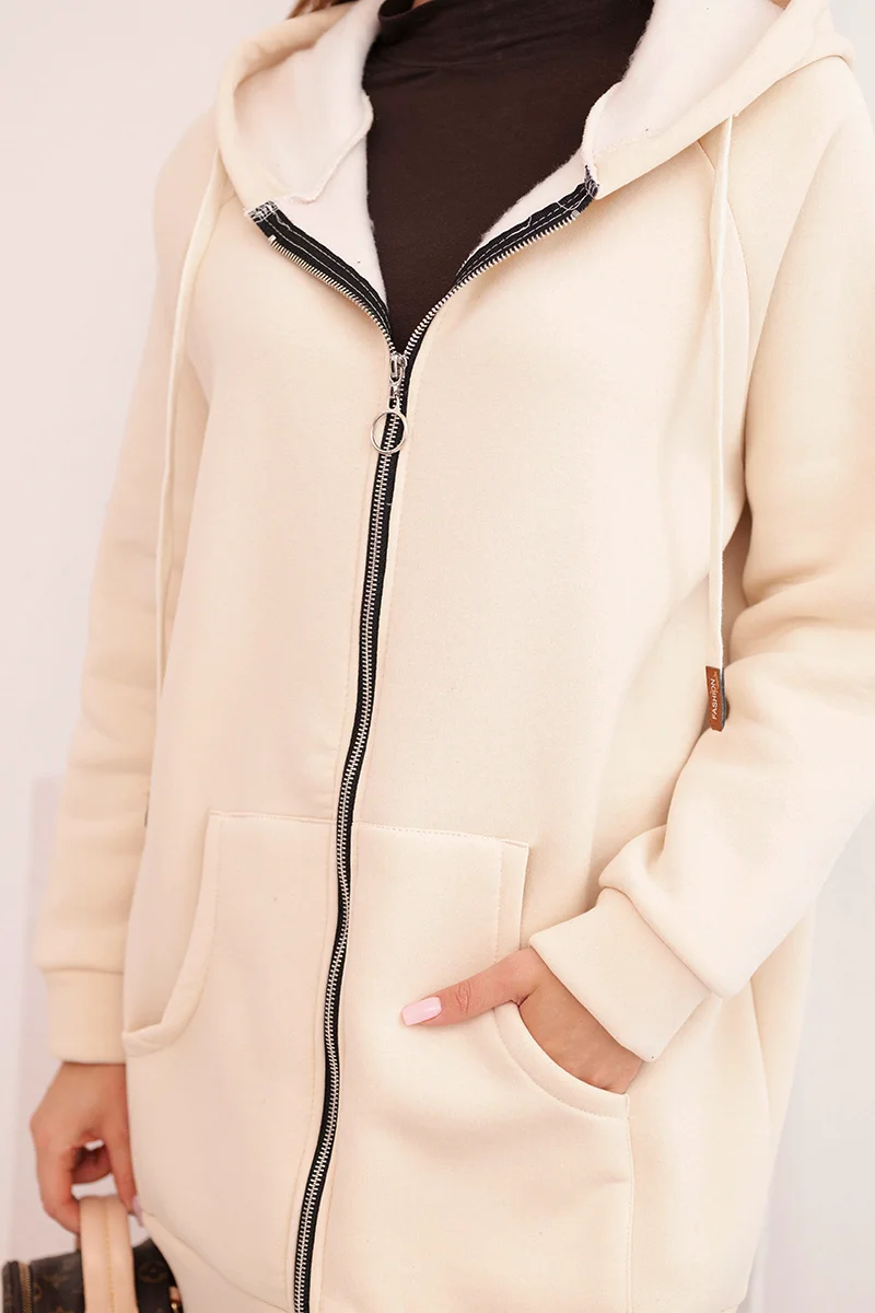 Bluza damska ocieplana bluza z kapturem i zamkiem beżowa