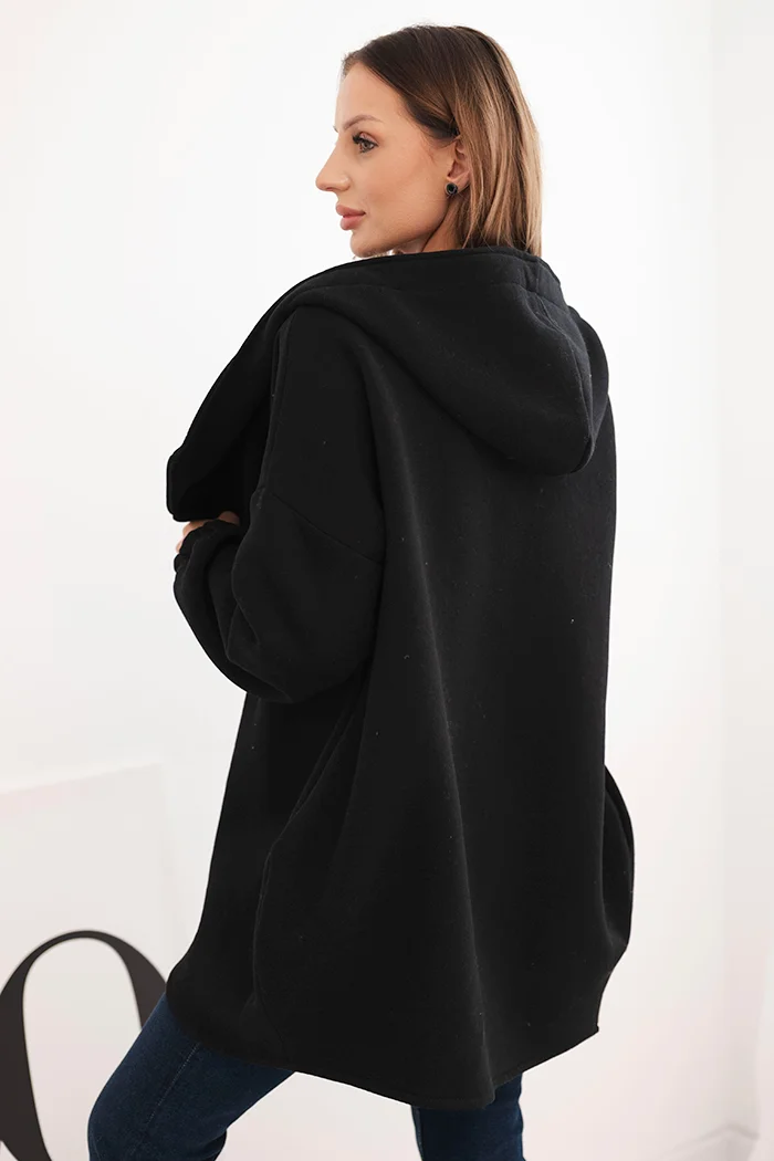 Bluza damska ocieplana z kapturem i asymetrycznym zamkiem beżowa