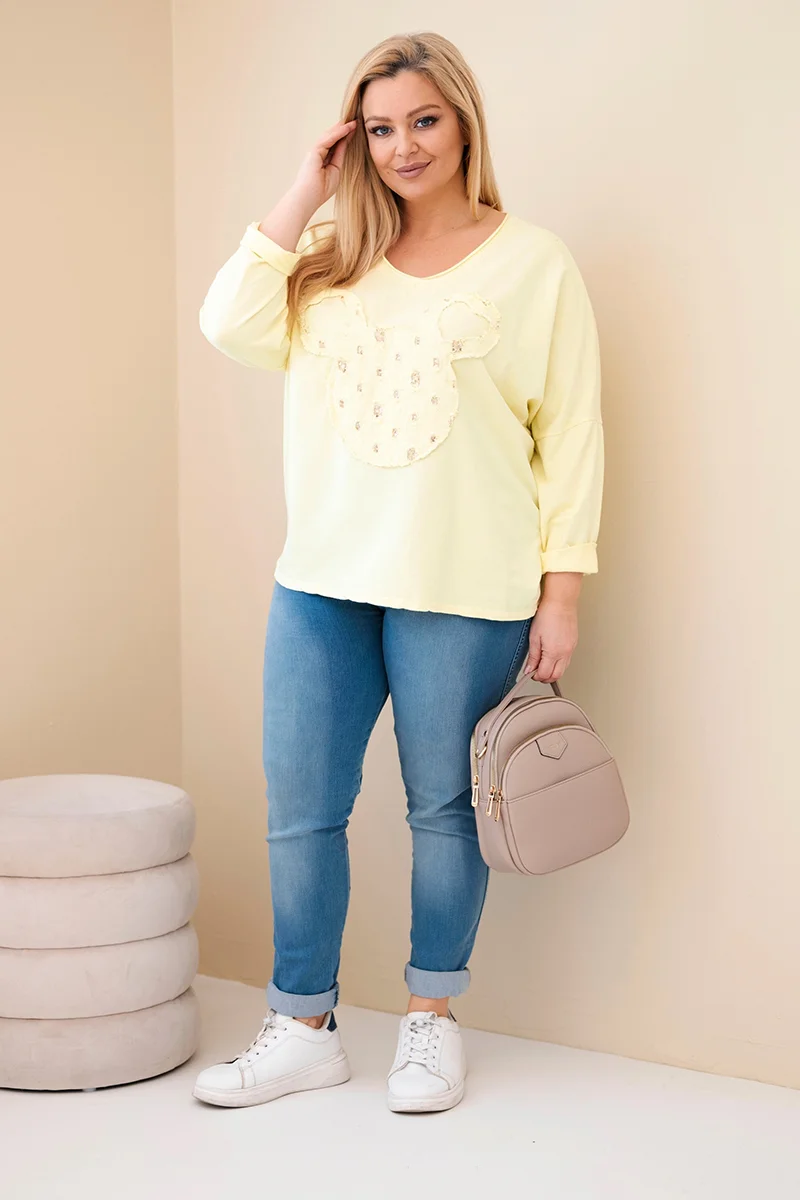 Bluzka damska bawełniana Plus Size z frędzlami żółta