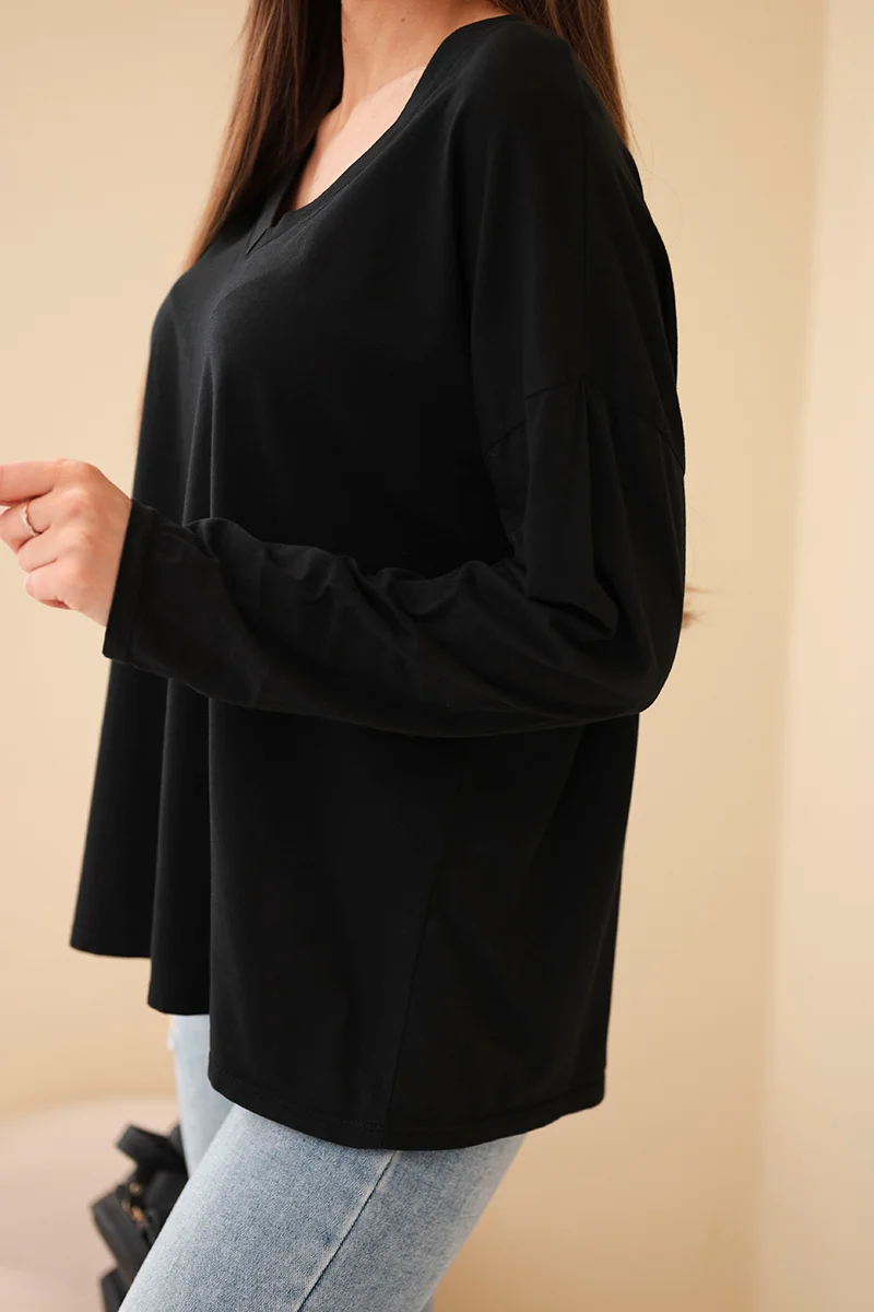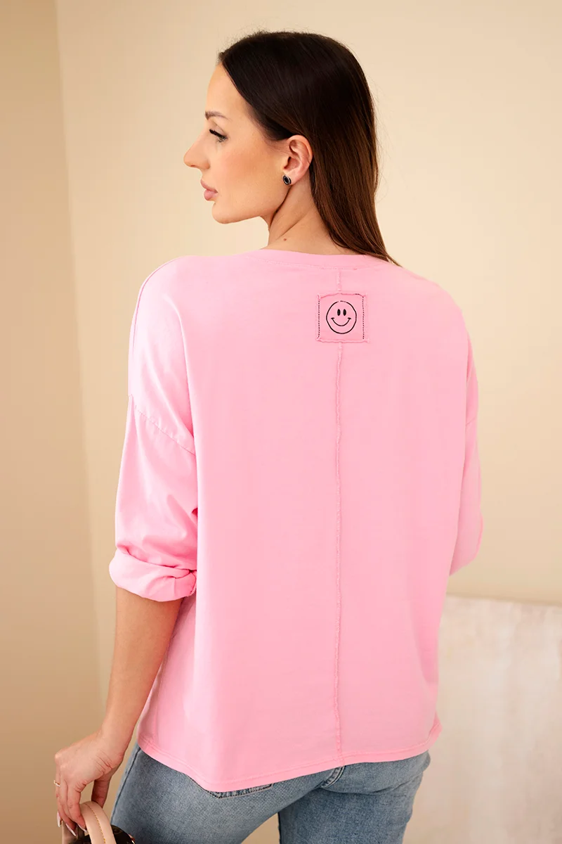 Bluzka damska bawełniana z dekoltem V z długim rękawem koralowa