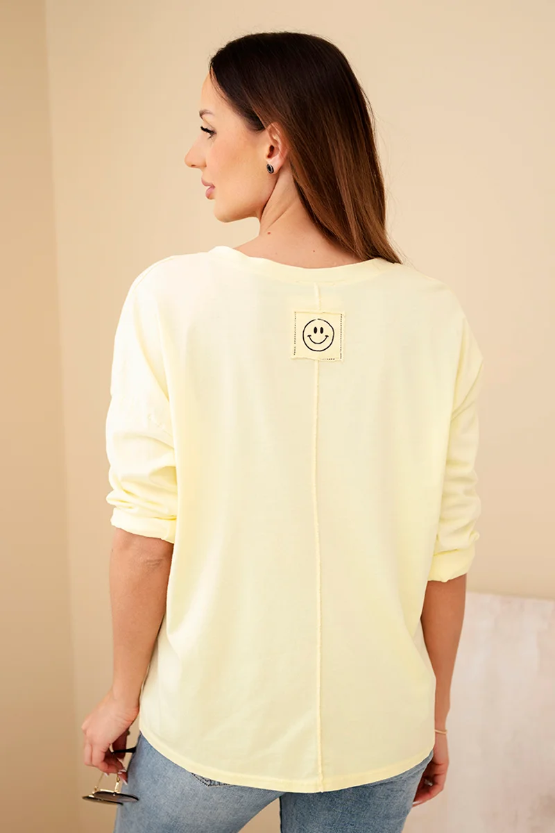 Bluzka damska bawełniana z haftowanymi kwiatami i dekoltem V beżowa
