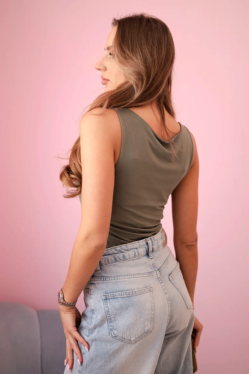 Bluzka damska na ramiączkach z dekoltem ciemno różowa