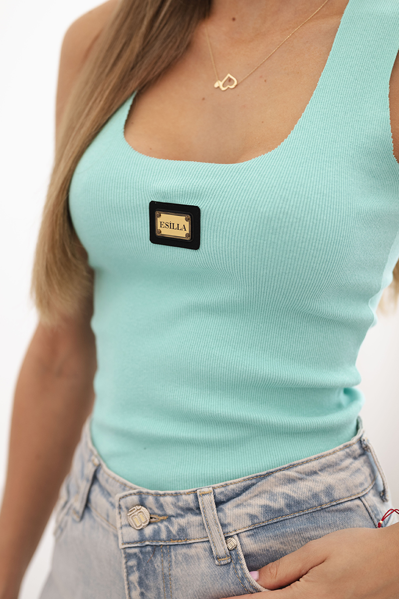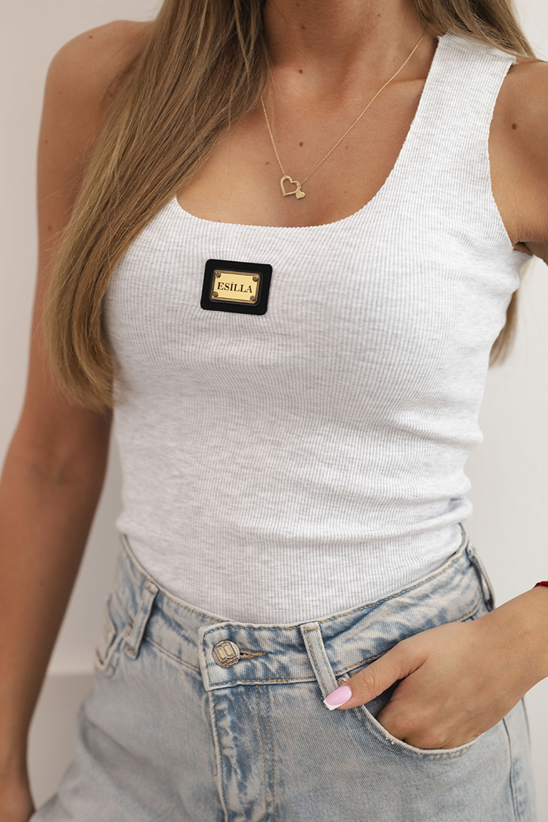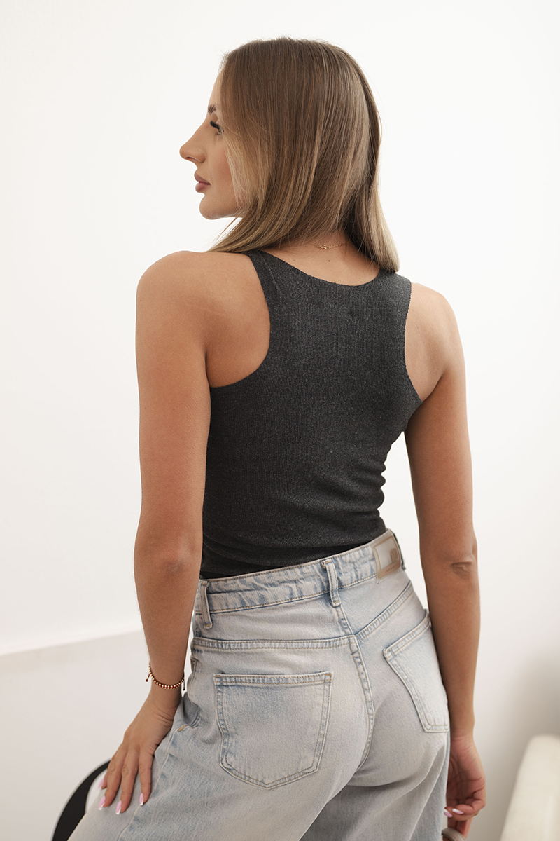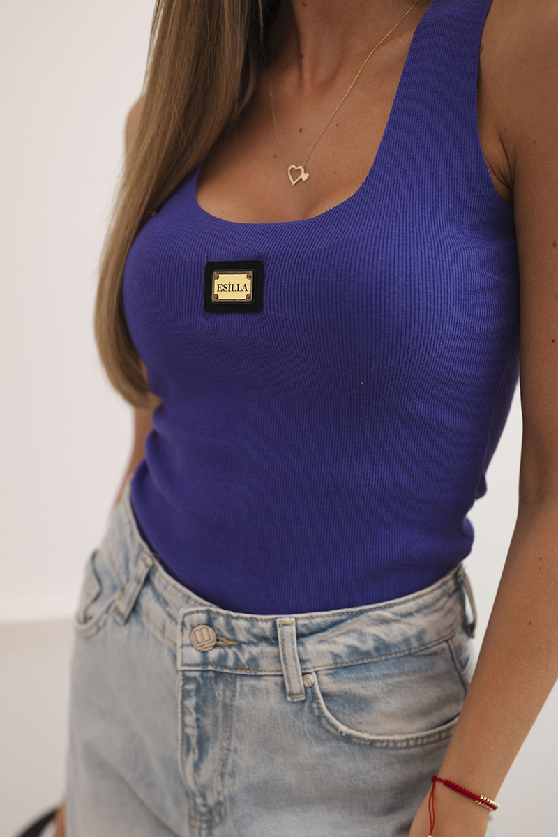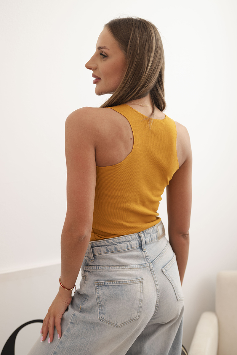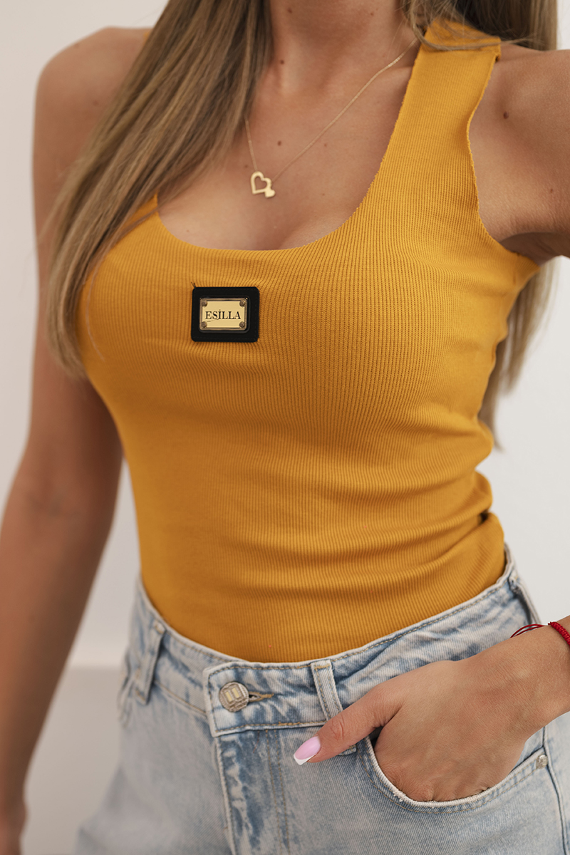 Bluzka damska prążkowana na ramiączkach z ozdobną naszywką ciemno pomarańczowa