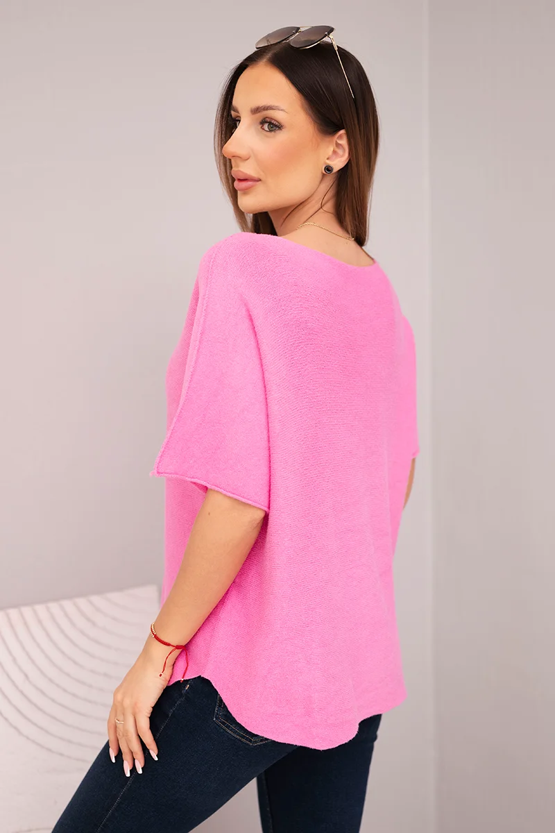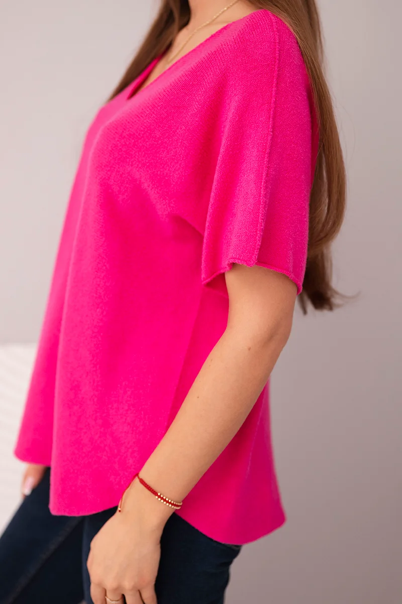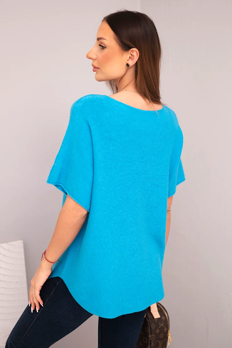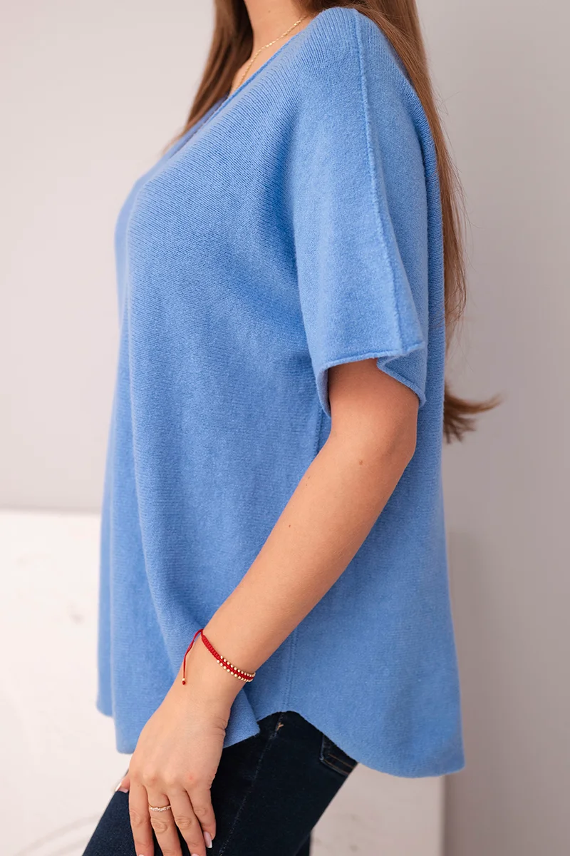 Bluzka damska sweterkowa z krótkim rękawem i dekoltem w serek chabrowa