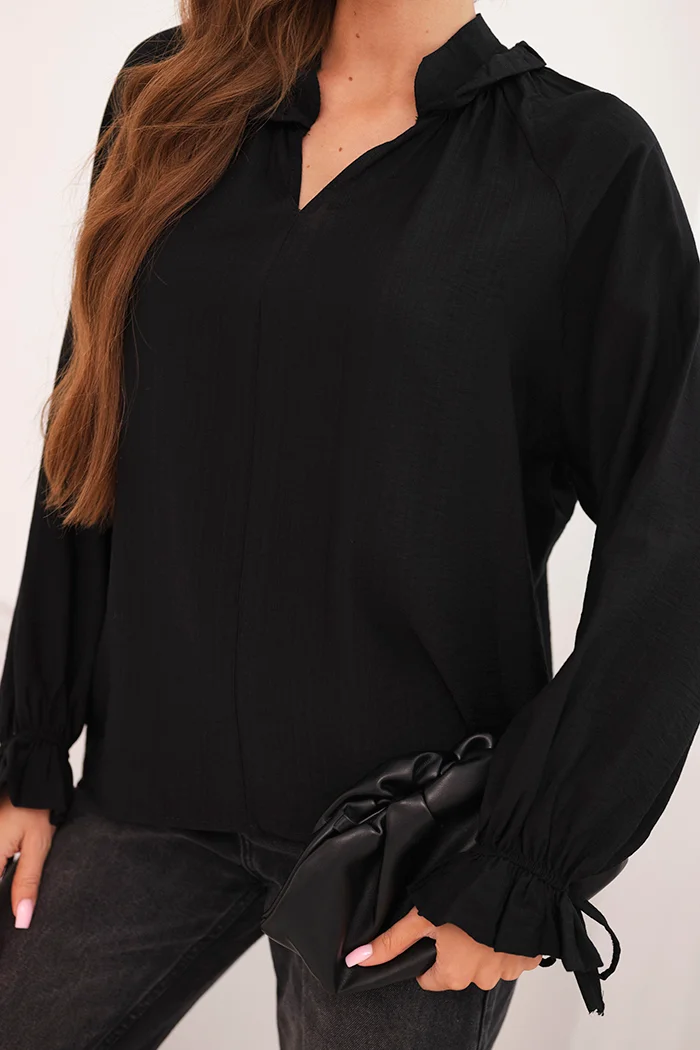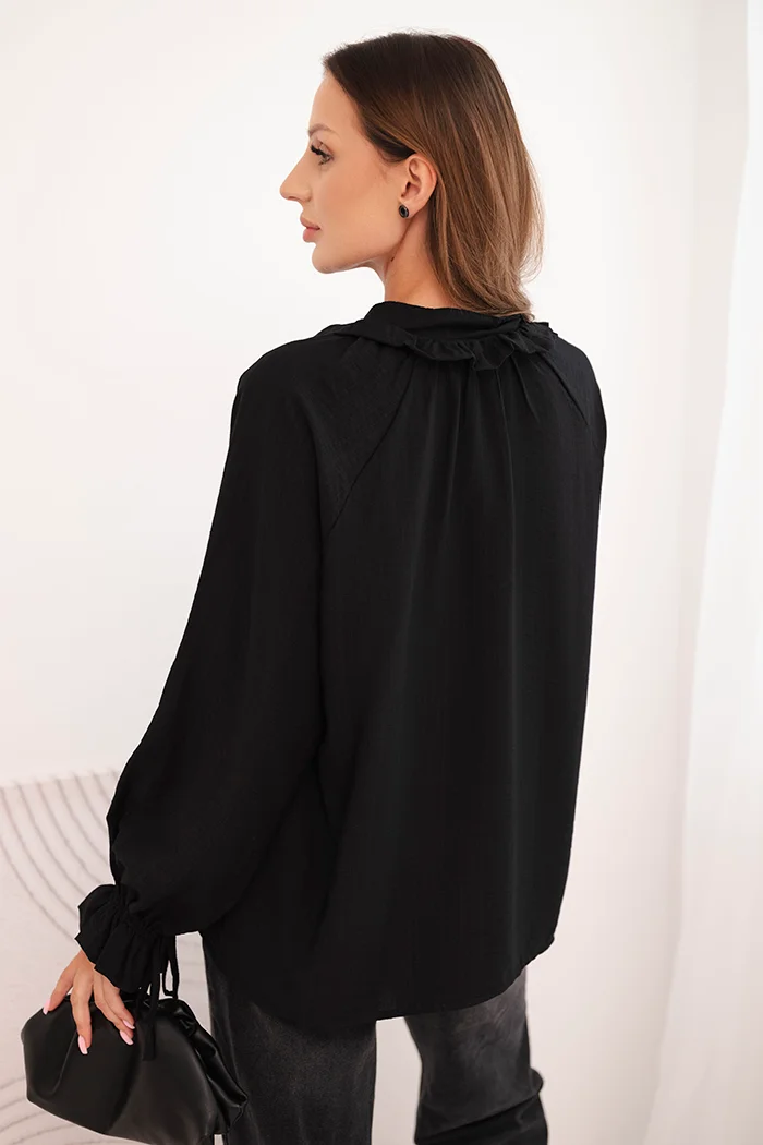 Koszula damska elegancka z wiskozy z ozdobnymi guzikami czarna