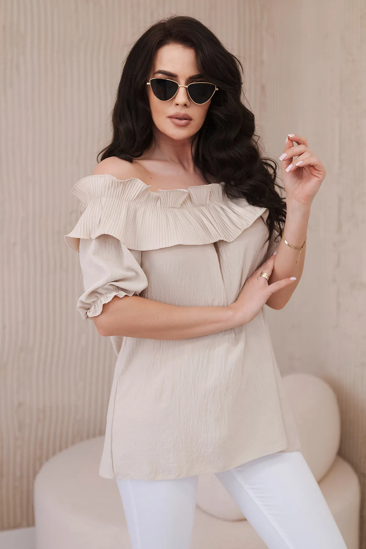 Bluzka hiszpanka z ozdobną falbanką chabrowa