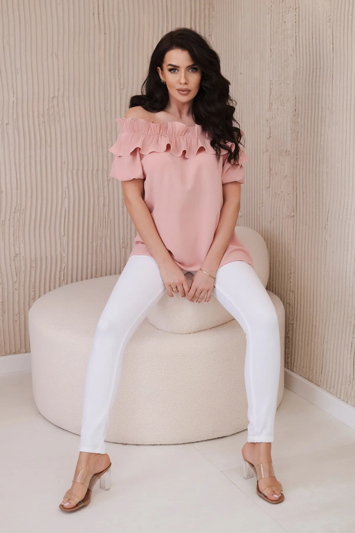 Bluzka hiszpanka z ozdobnym rękawem jasno różowa