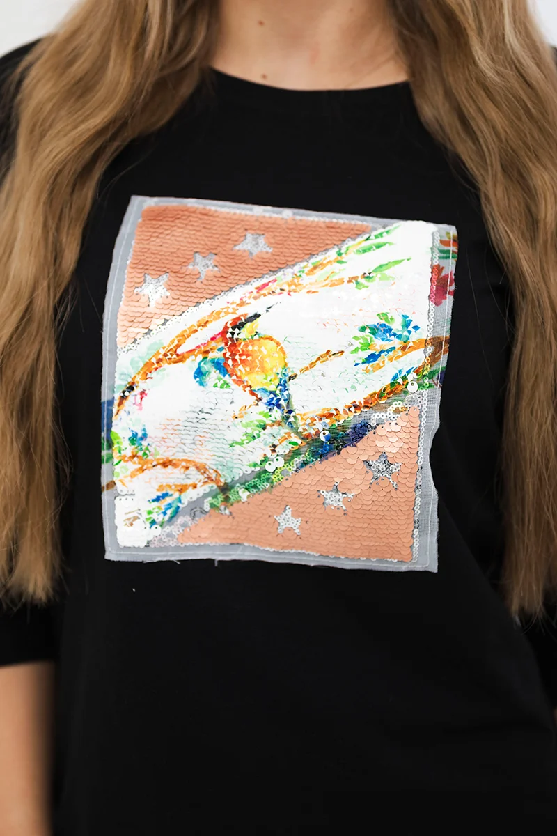 Sukienka z grafiką 3D z perełkami czarna