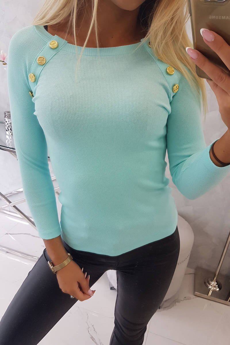 Bluzka z ozdobnymi guzikami miętowa