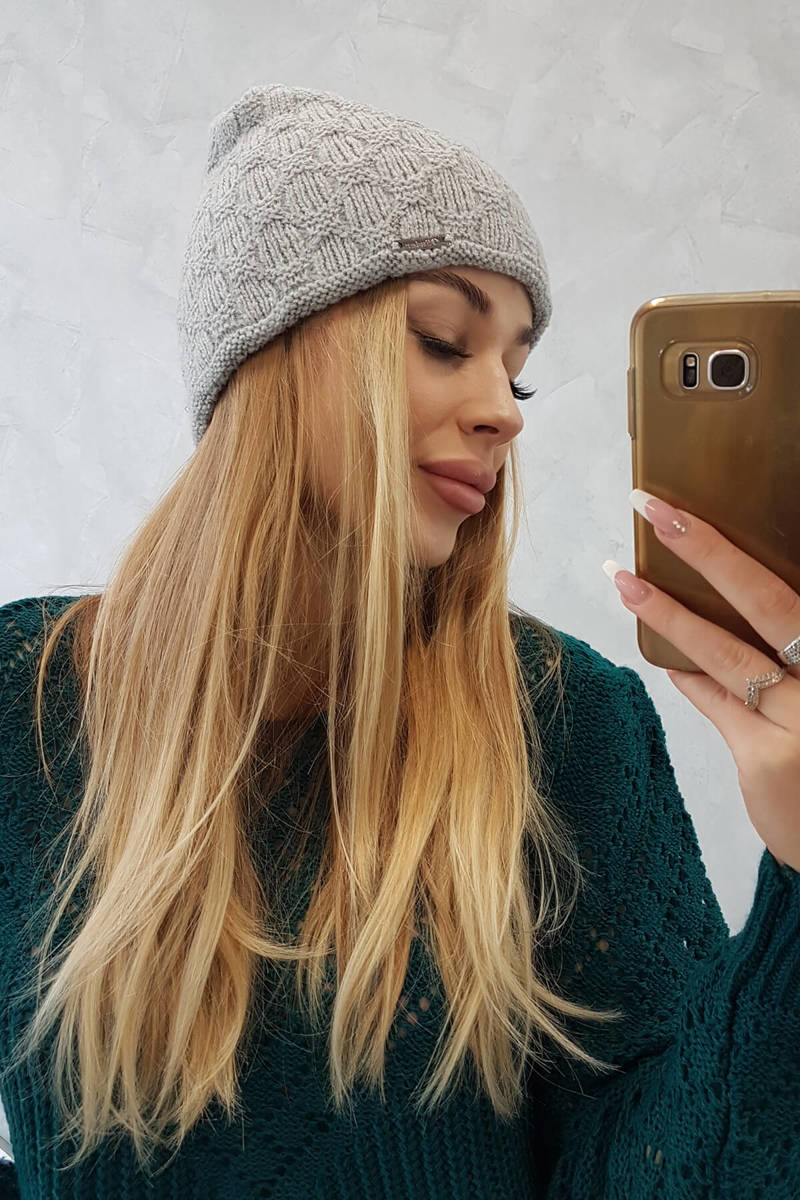Czapka z polarem Paris K212 ciemny beżowy+beżowy