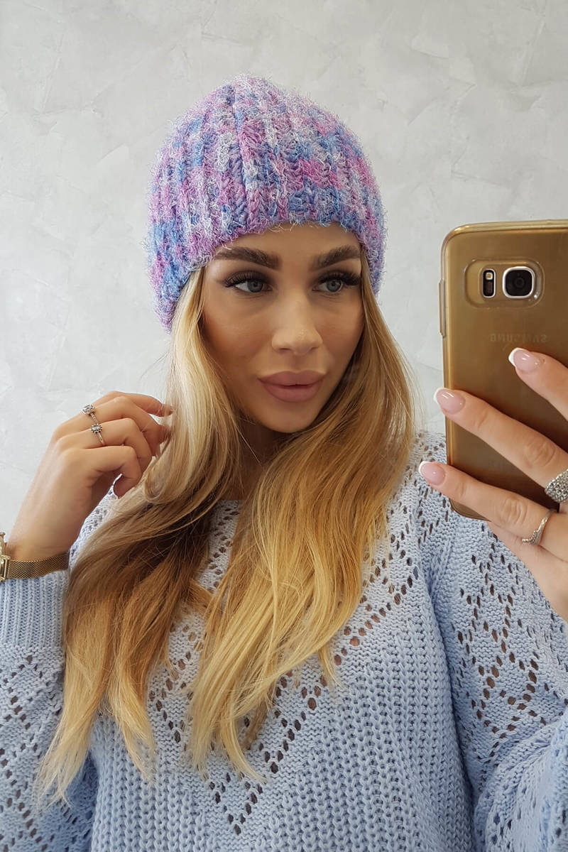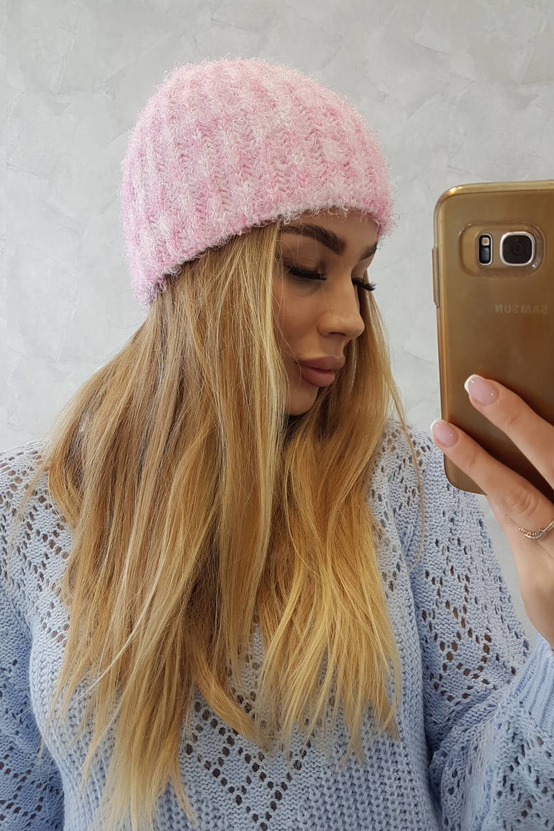 Czapka damska Cina K259 ecru+malinowy
