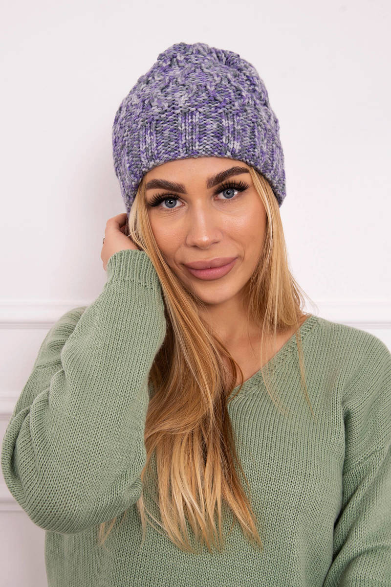 Czapka z polarem Roksana K209 fioletowy+grafitowy