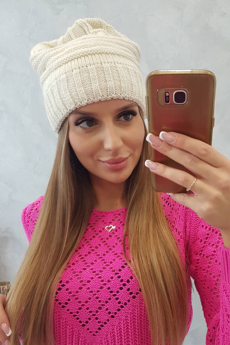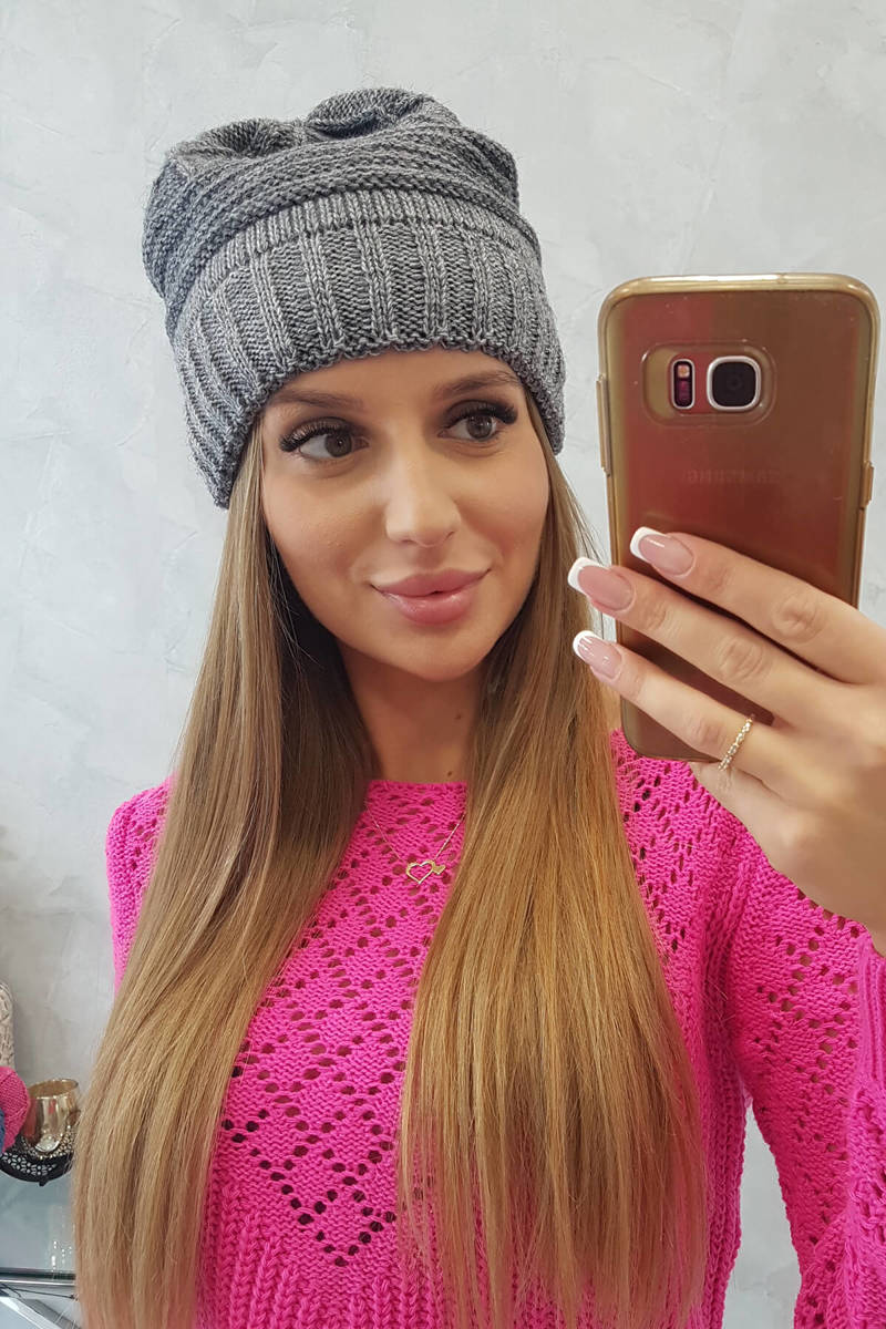 Czapka damska uszatka Eunika K322 szary+niebieski