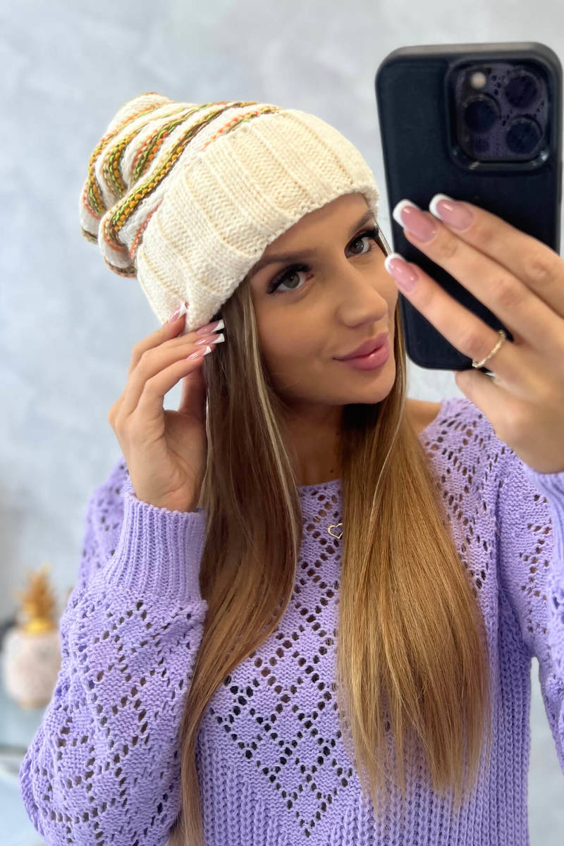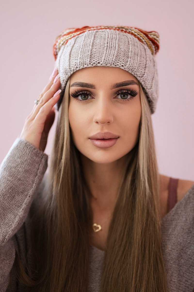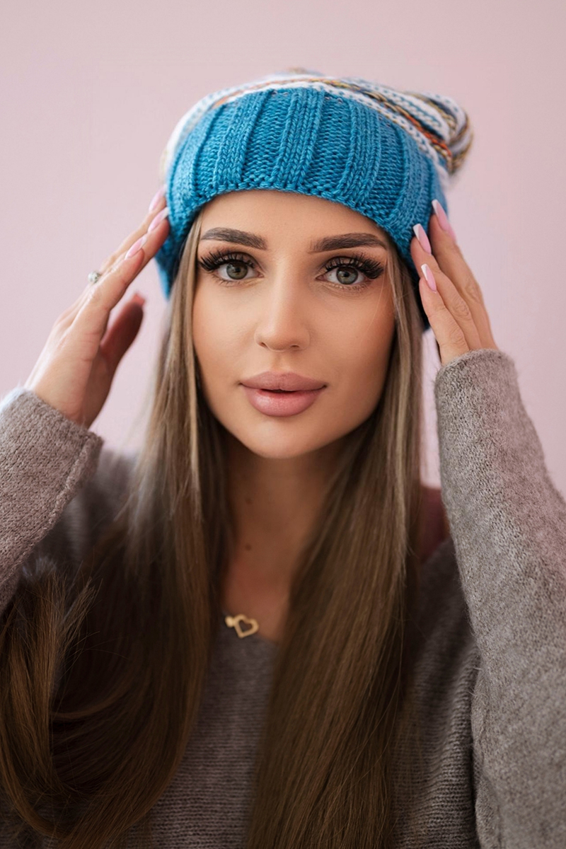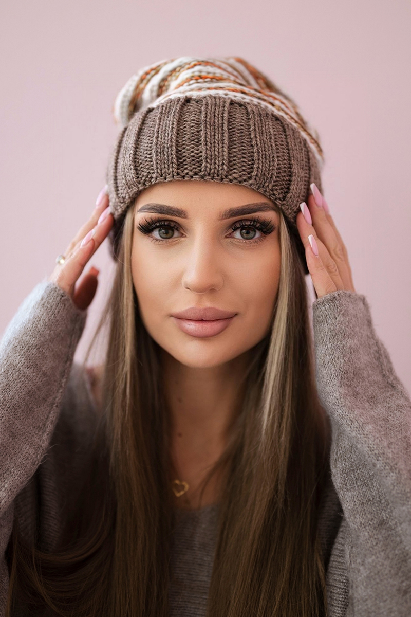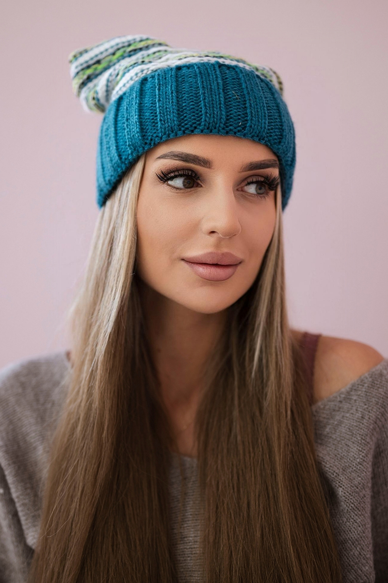 Czapka damska z pomponem Abigail K326 kiwi+ecru