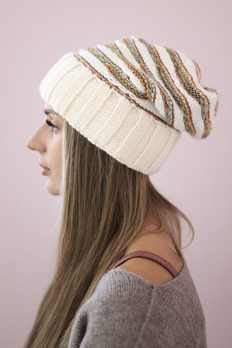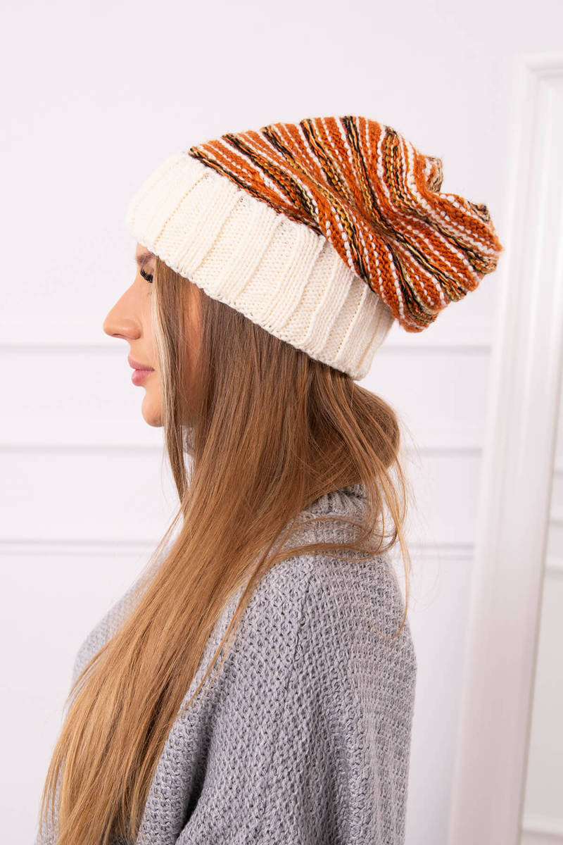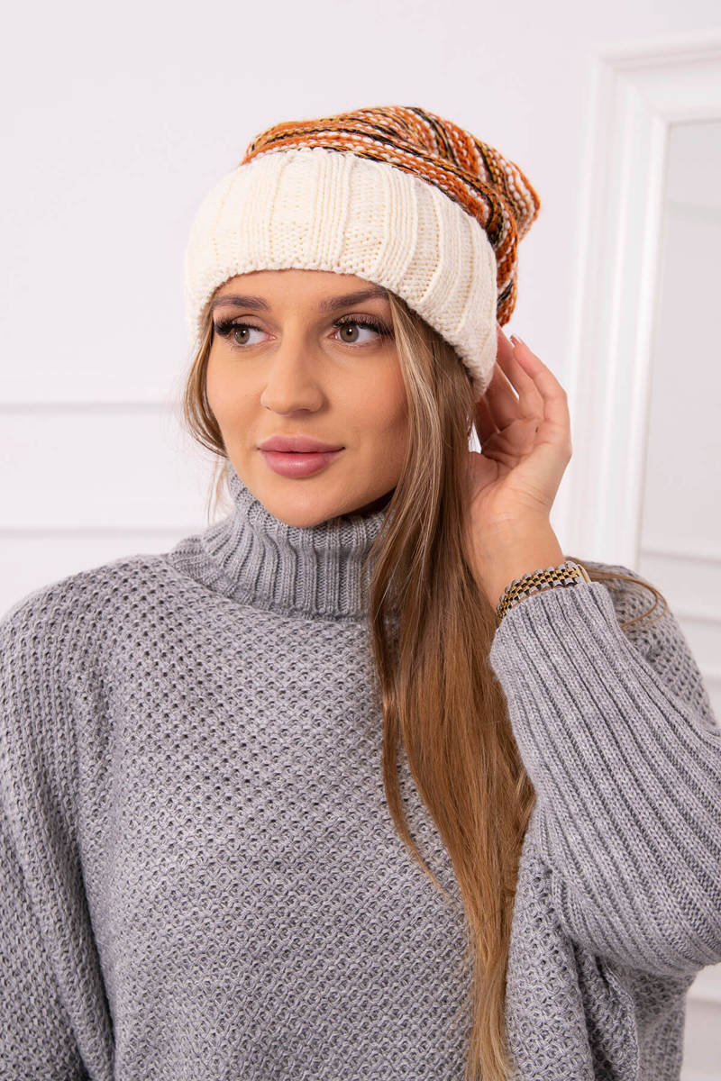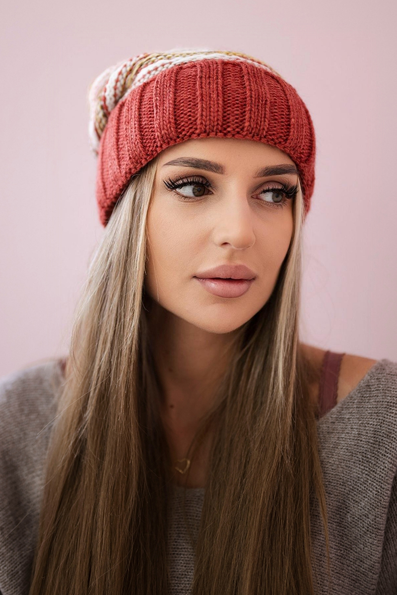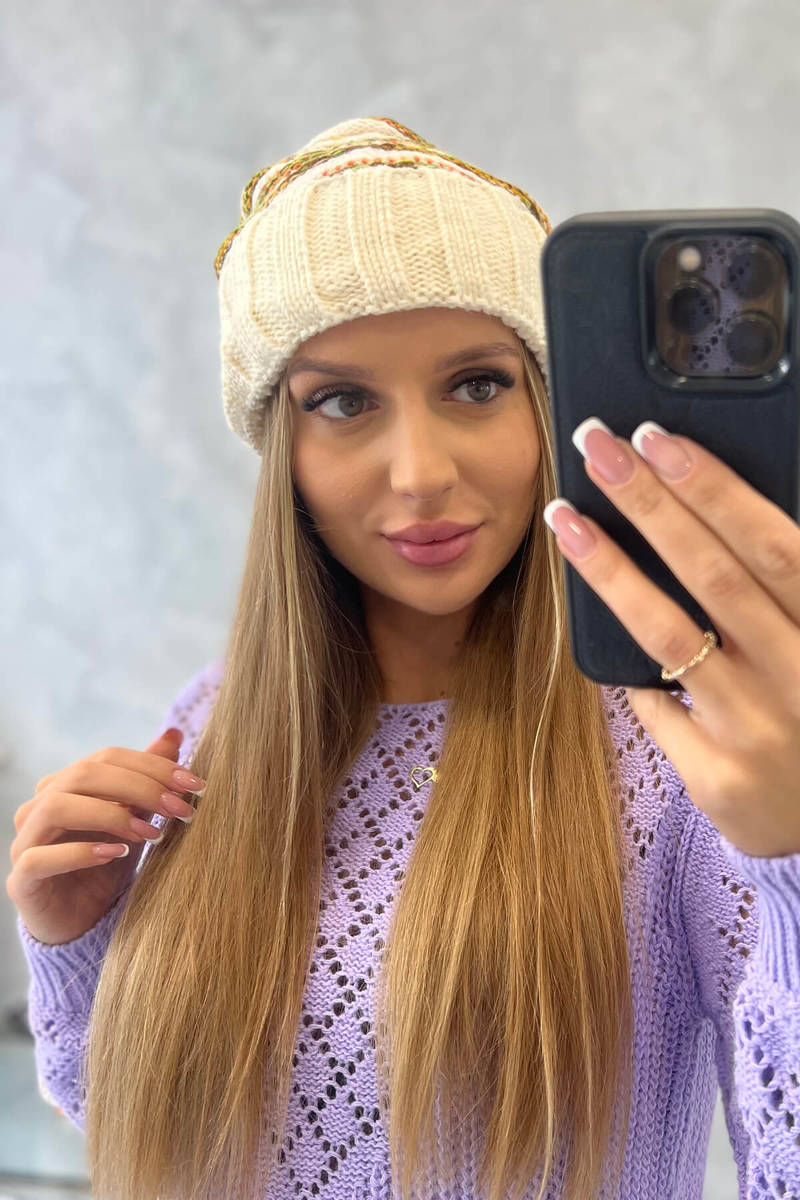 Czapka damska z pomponem Abigail K326 kiwi+ecru