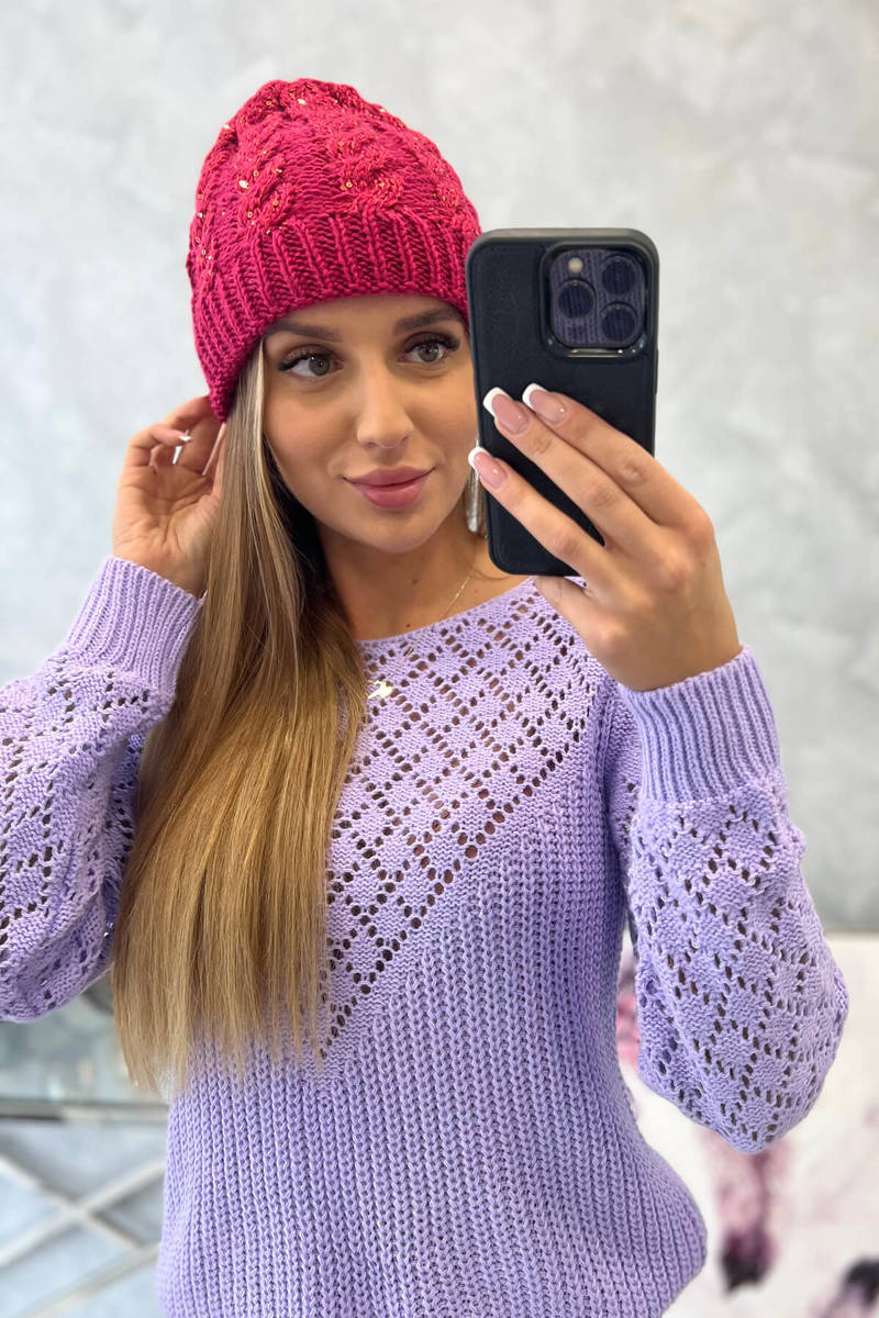 Czapka damska London K385 ciemny fioletowy