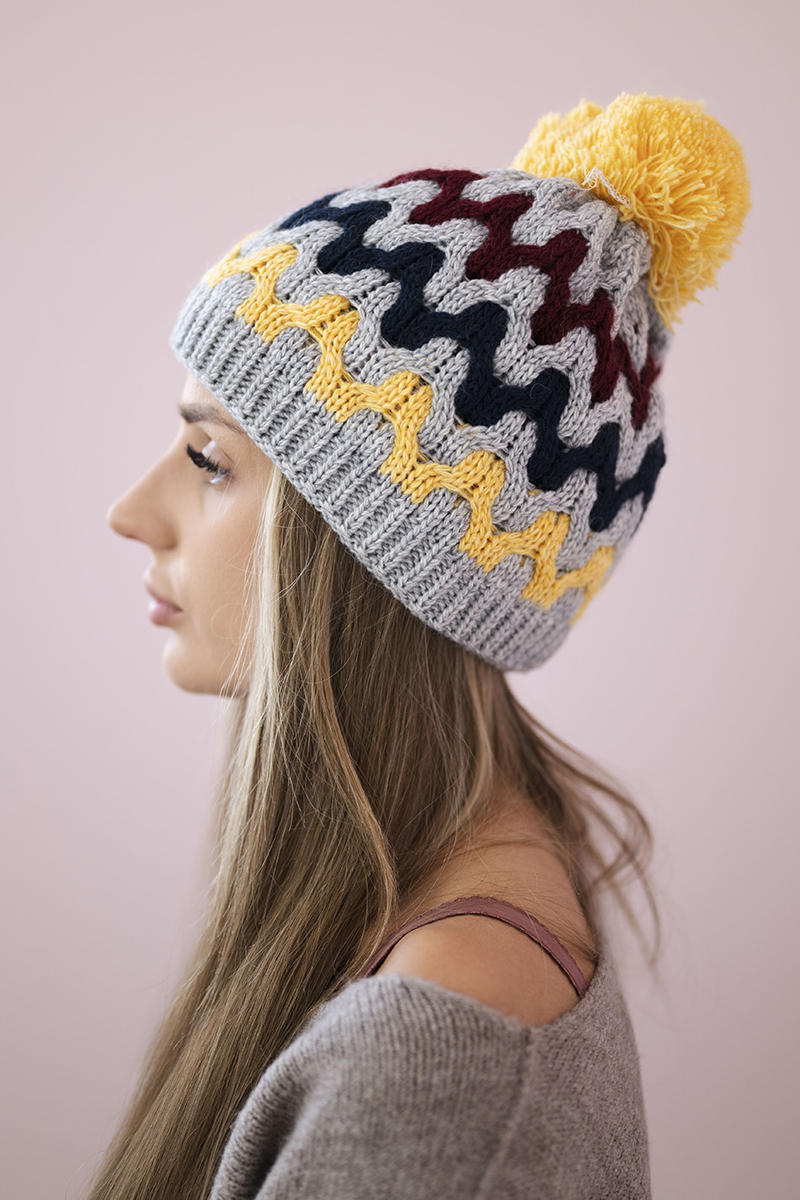 Czapka damska Laila K283 pomarańczowy neon+czarny+zielony neon