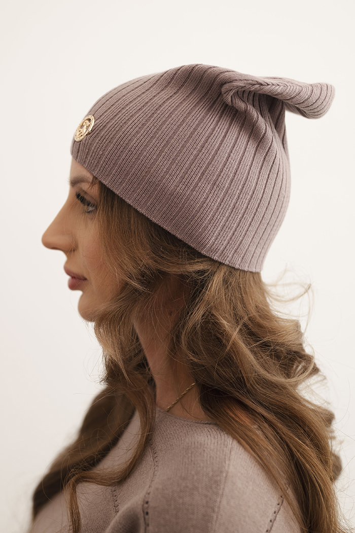 Czapka damska prążkowana z ozdobnym guzikiem z dodatkiem wiskozy i modalu zielona