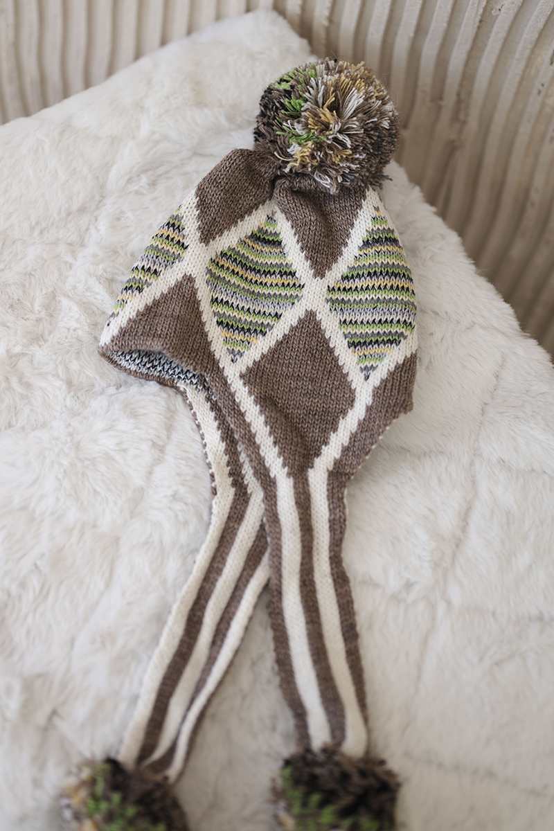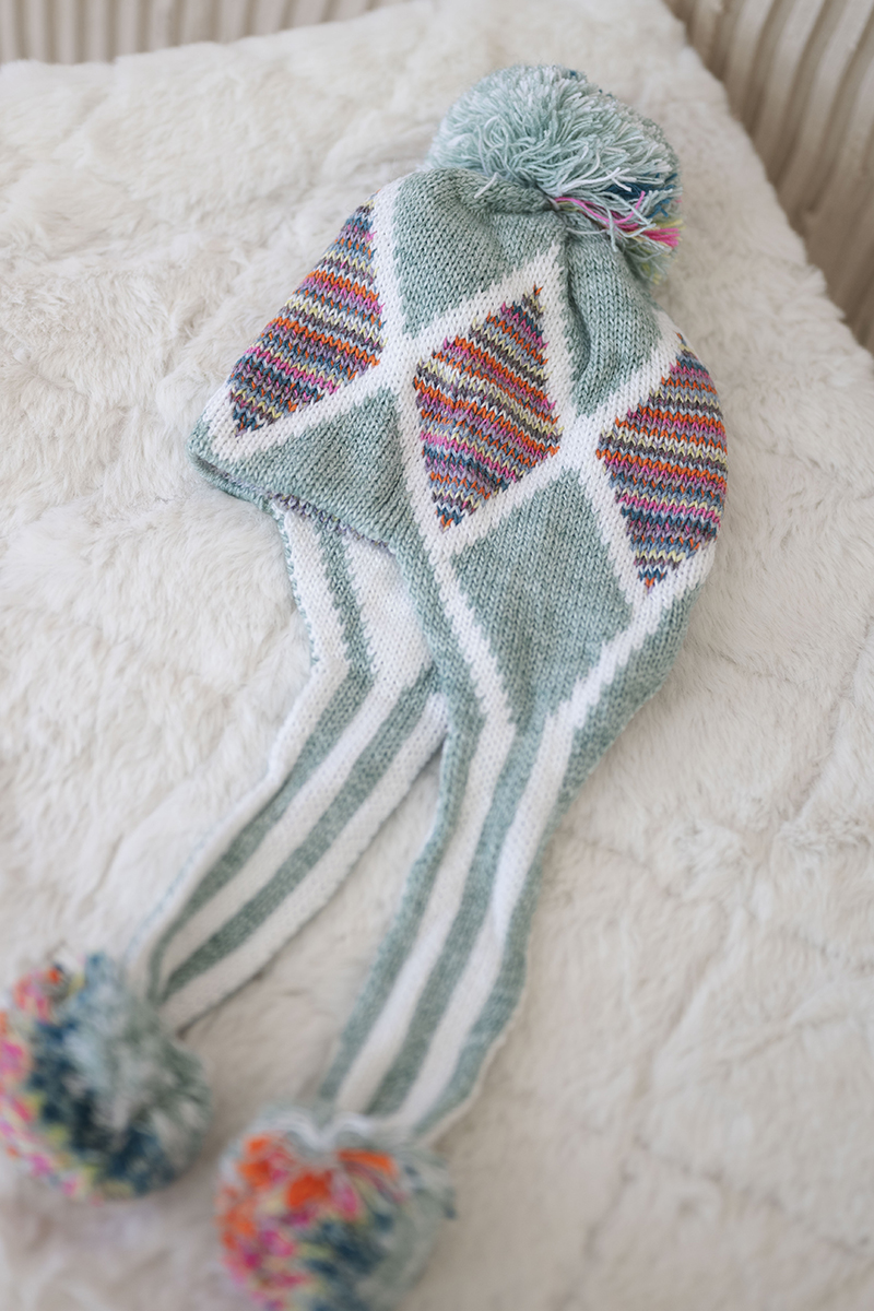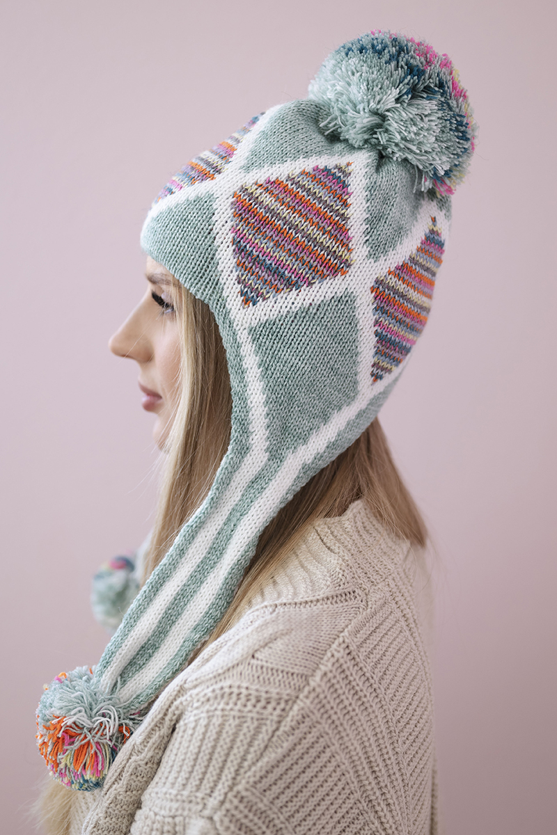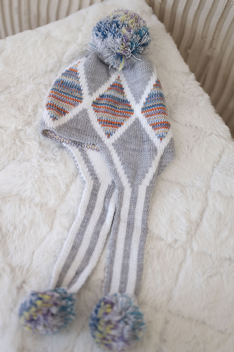 Czapka damska uszatka Eunika K322 szary+niebieski