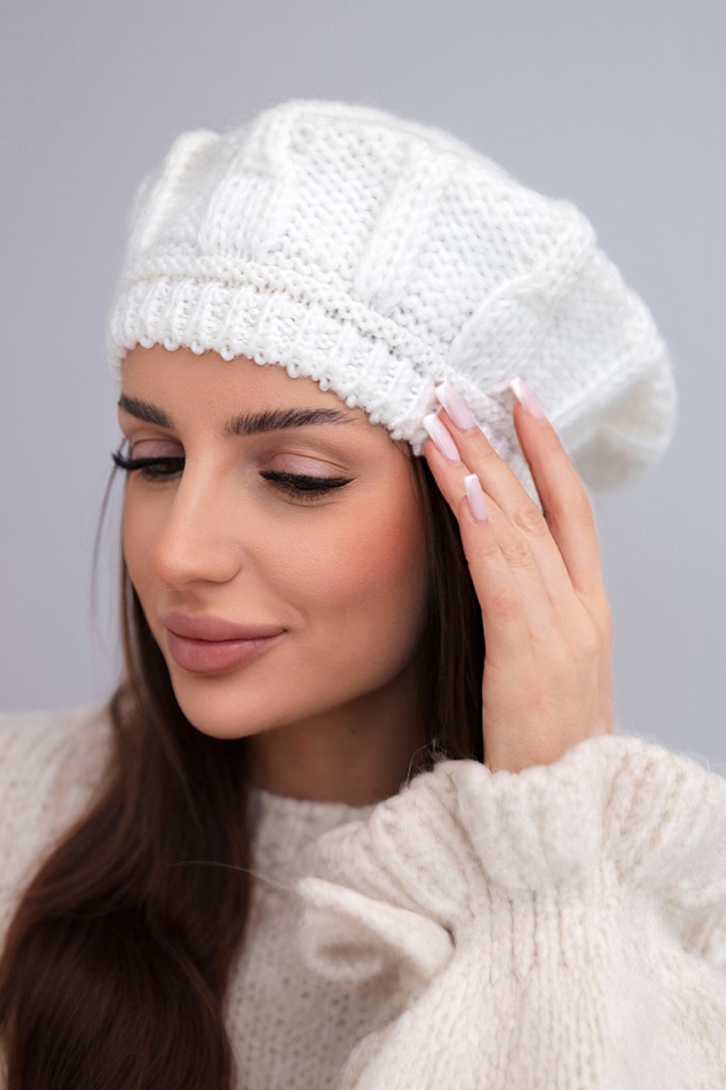 Czapka damska wełniana zimowa z ozdobnym splotem K403 biała