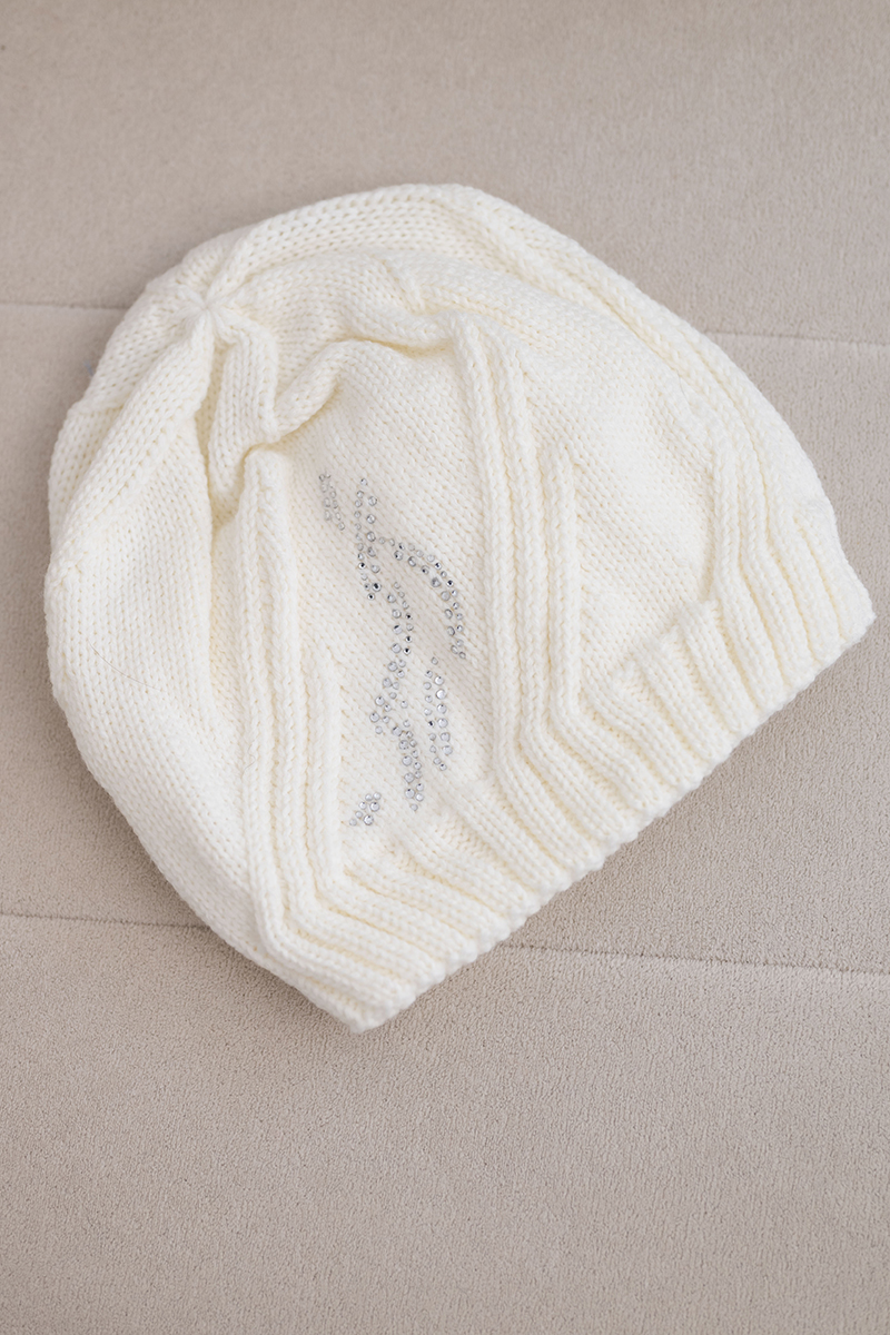Czapka damska wełniana zimowa z ozdobnym paskiem cyrkonii K402 ciemno fioletowa