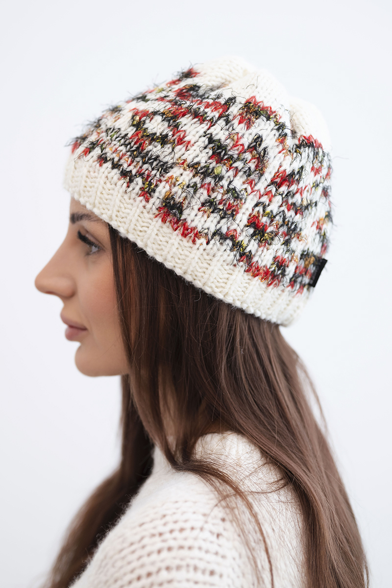 Czapka damska wełniana zimowa beret K414 pomarańczowa