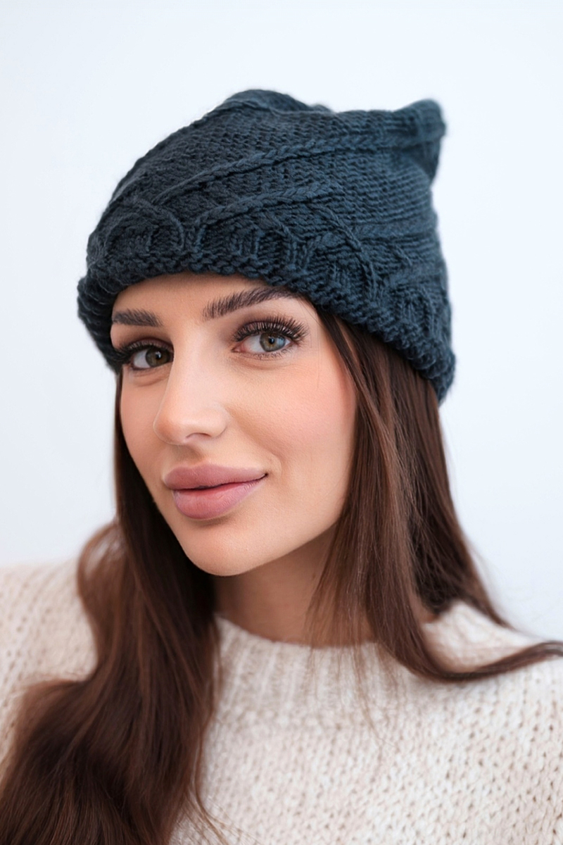 Czapka damska wełniana zimowa z ozdobnym splotem K403 biała