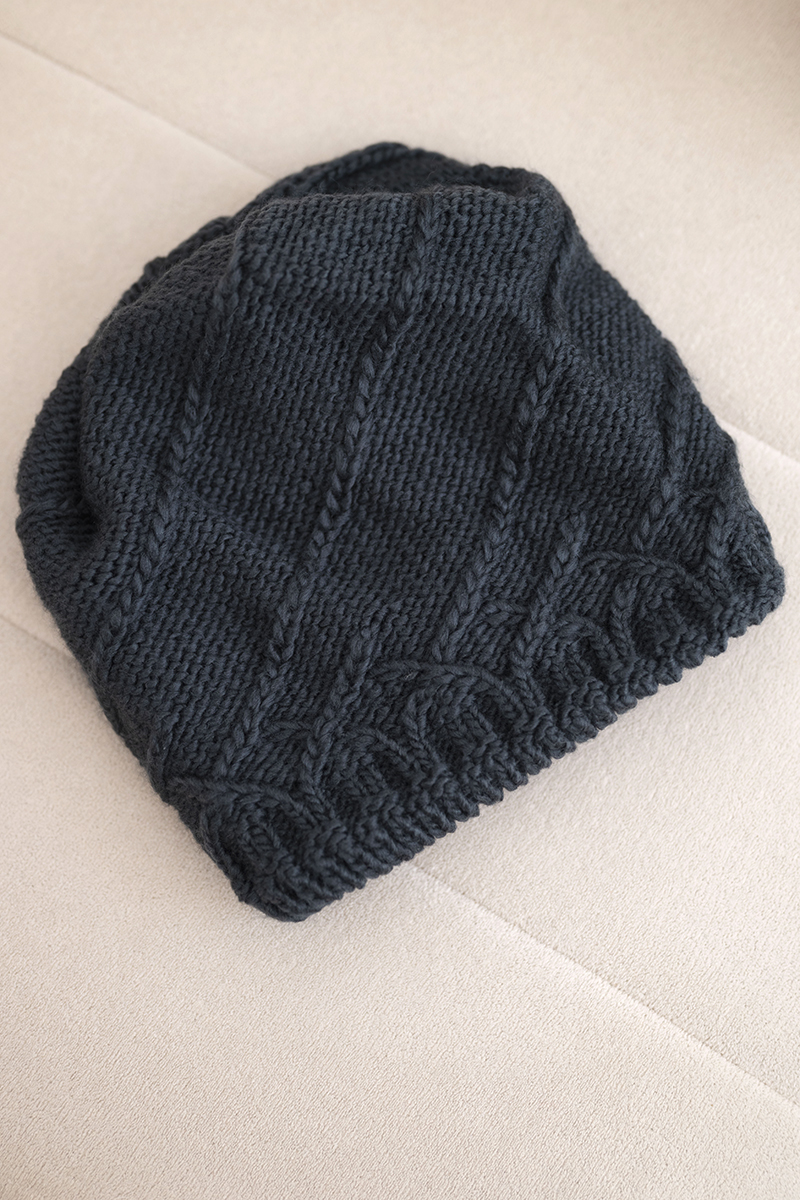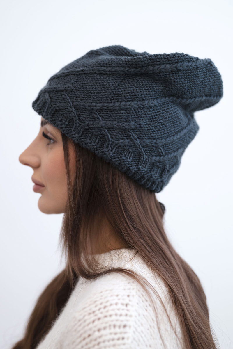 Czapka damska wełniana zimowa z ozdobnym paskiem cyrkonii K402 ciemno fioletowa