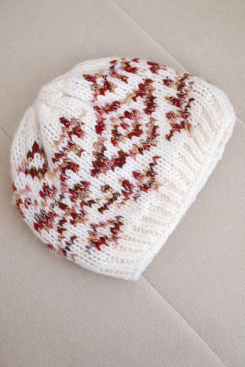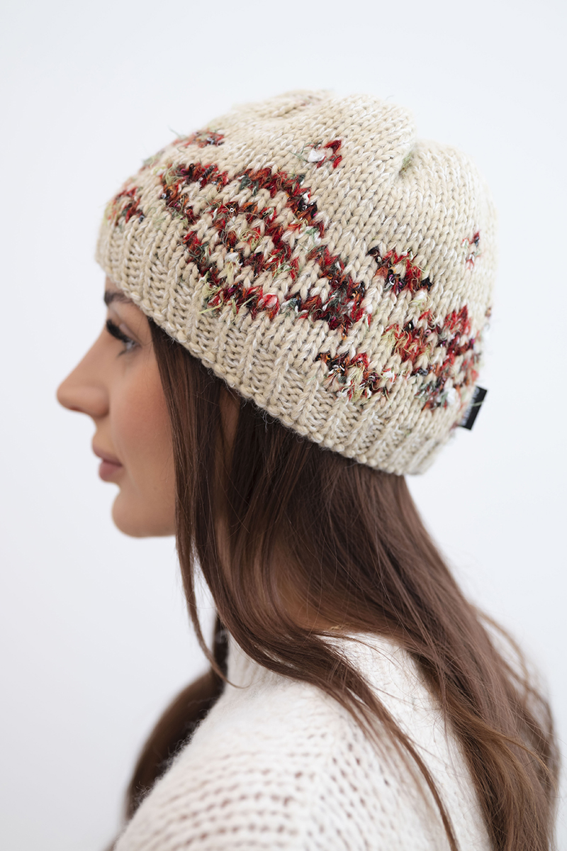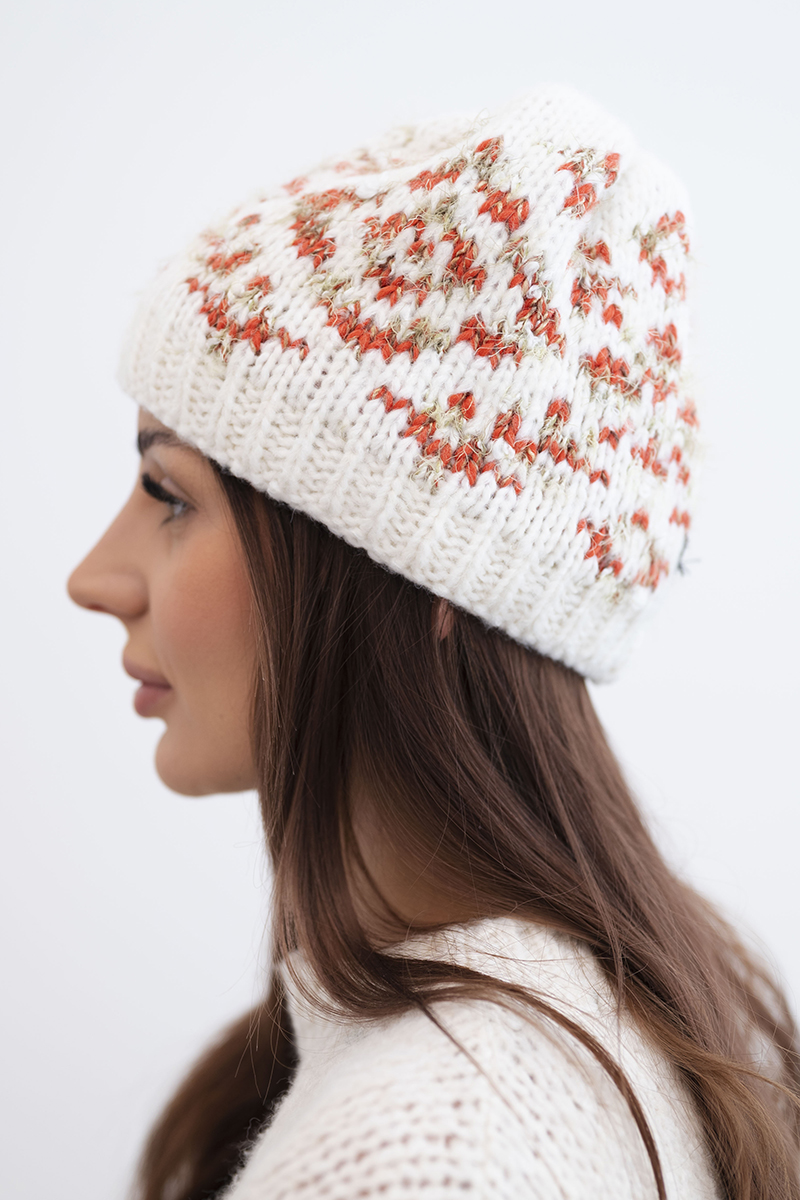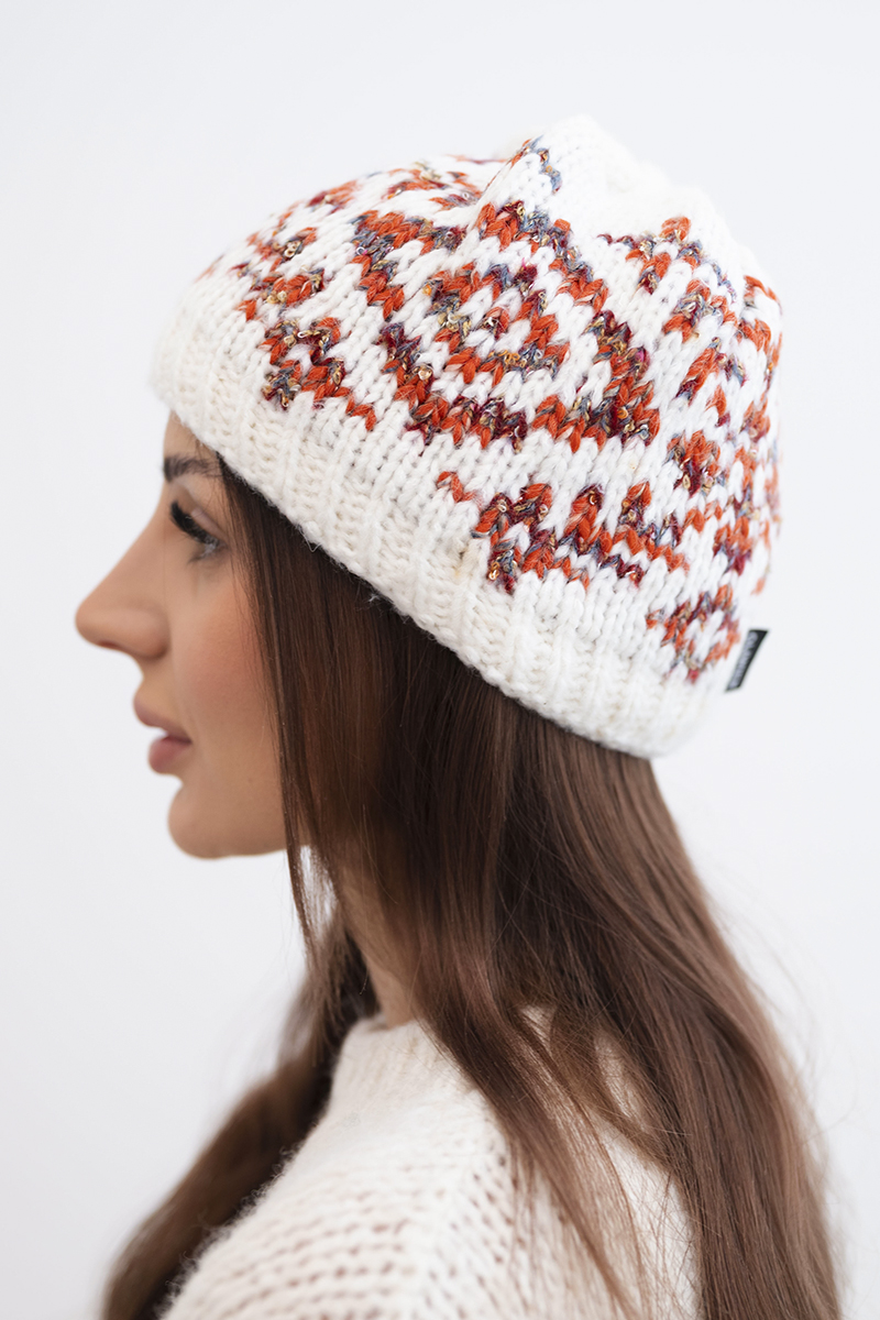 Czapka damska zimowa w kolorowe wzory z grubym ściągaczem K353 biały+czerwony