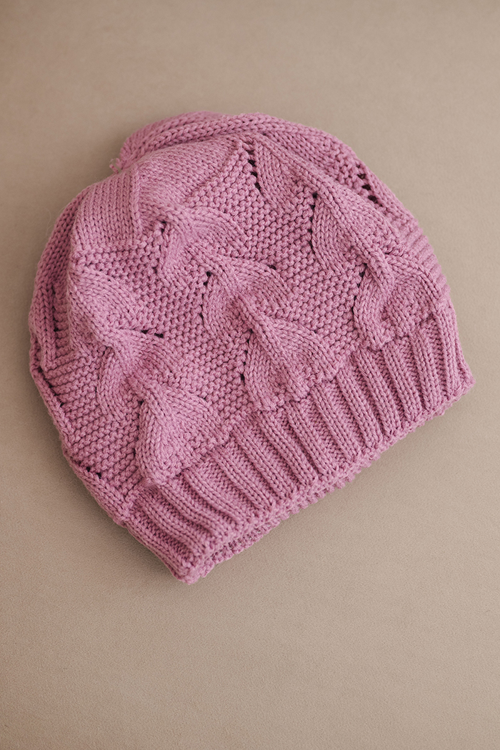 Czapka damska zimowa wełniana z pomponem K433 fioletowa