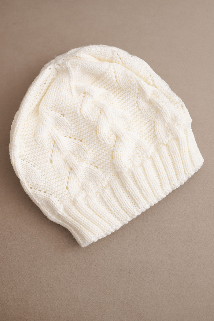 Czapka damska zimowa z wełny i z przeplatanym wzorem K428 czarna
