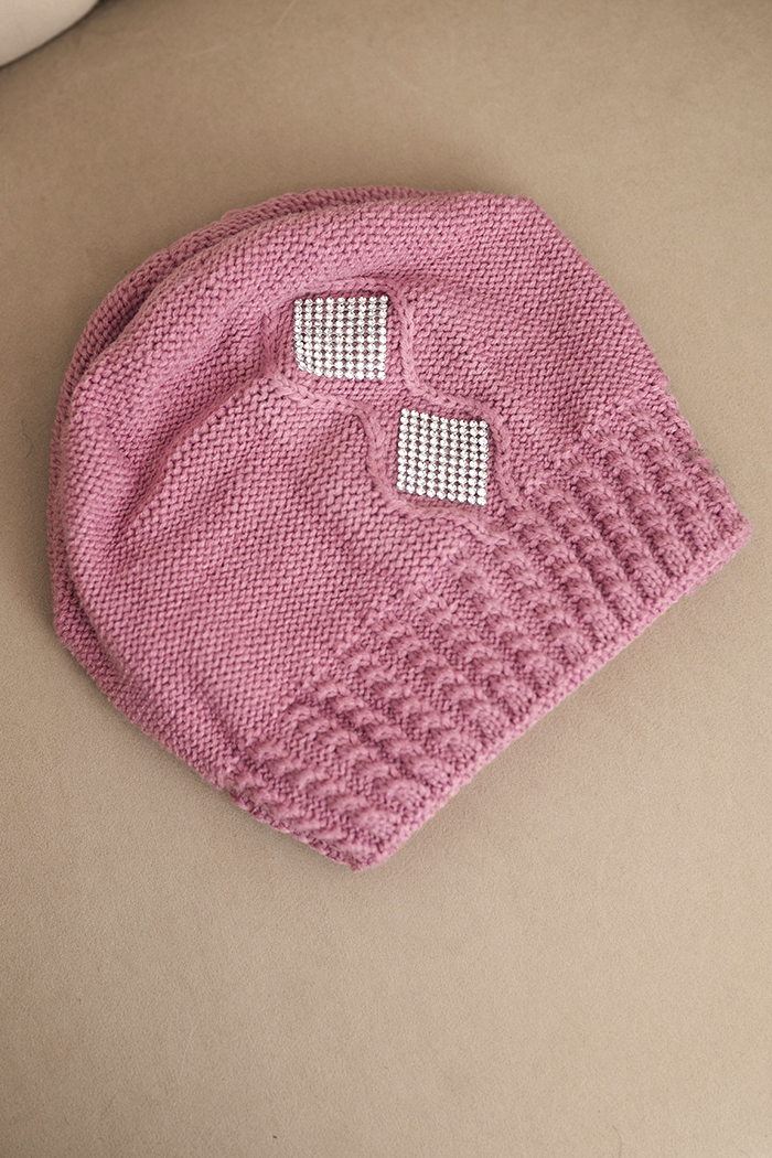 Czapka damska zimowa dzianinowa z wzorem śnieżynek K463 ciemno różowa