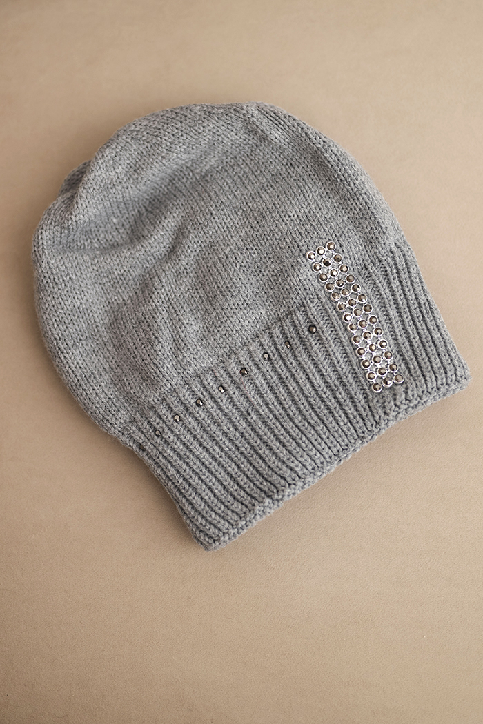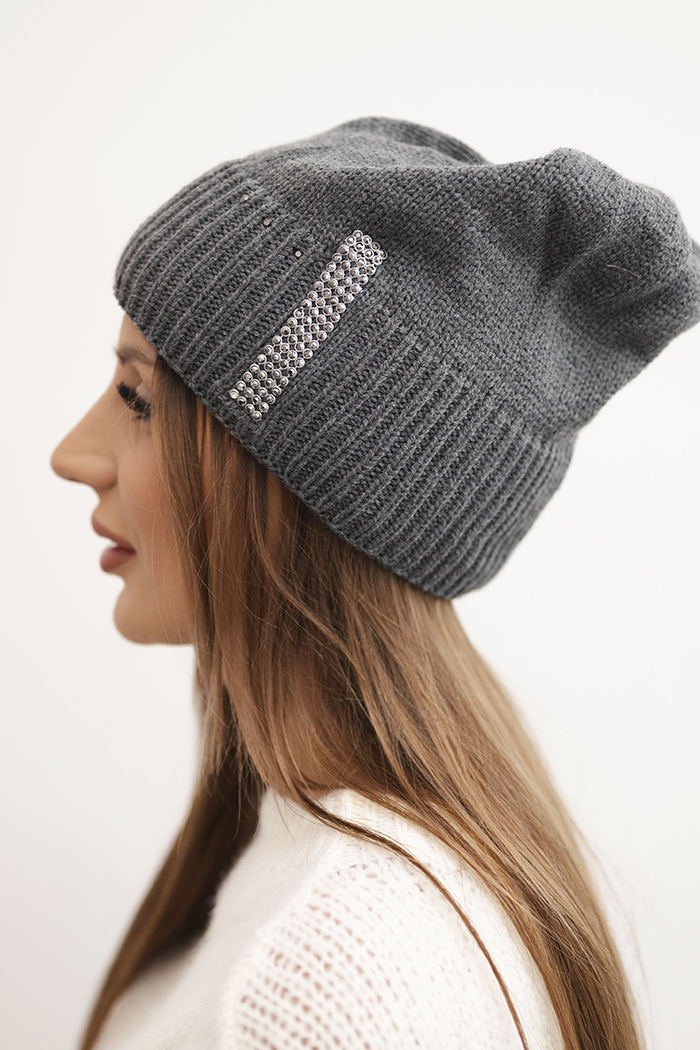Czapka damska zimowa wełniana z cyrkoniami K453 pomarańczowa