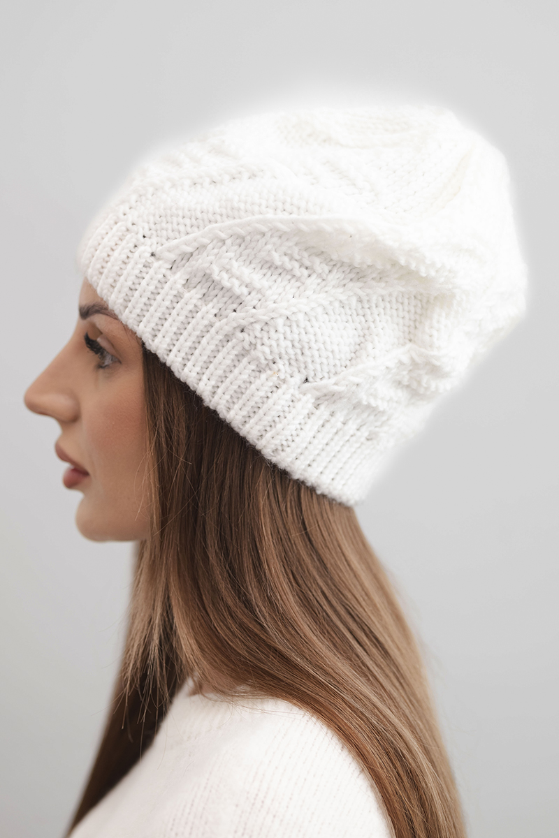 Czapka damska zimowa wełniana z delikatnym wzorem K460 biała