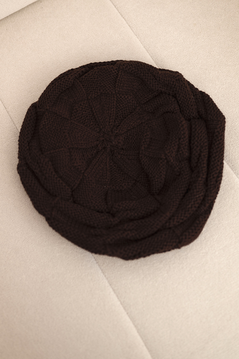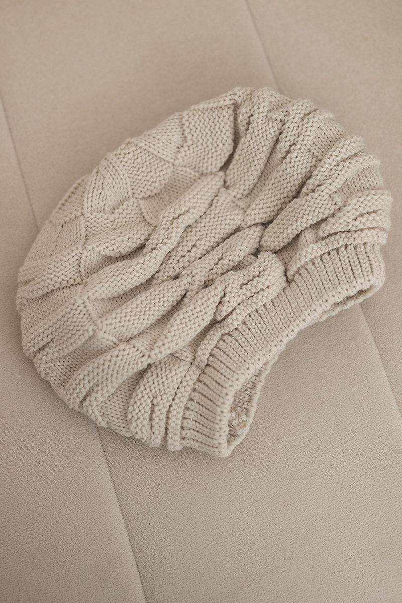Czapka damska zimowa wełniana z ozdobnym splotem i dżetami K397 ecru