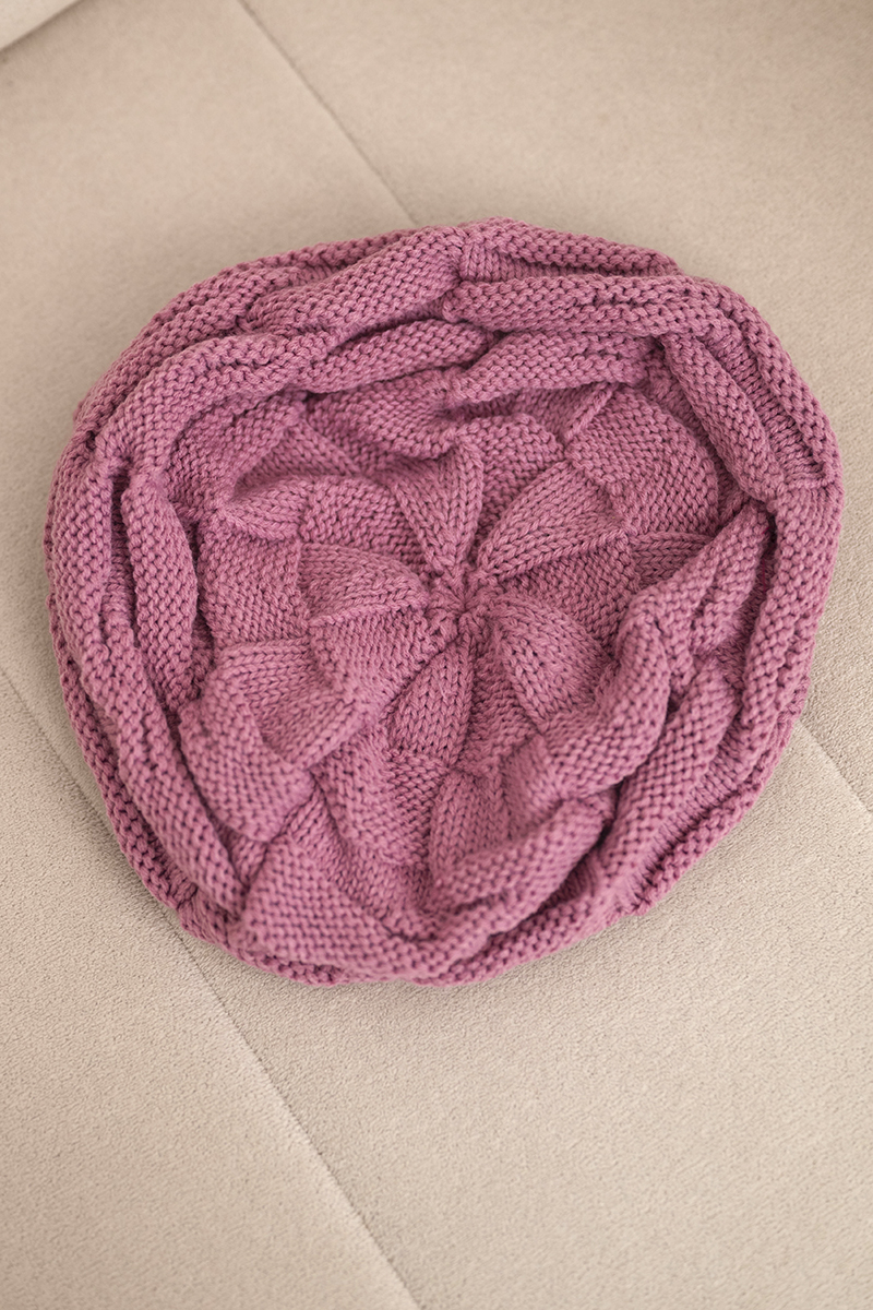Czapka damska zimowa wełniana o luźnym fasonie i ozdobnym splocie K378 czerwona