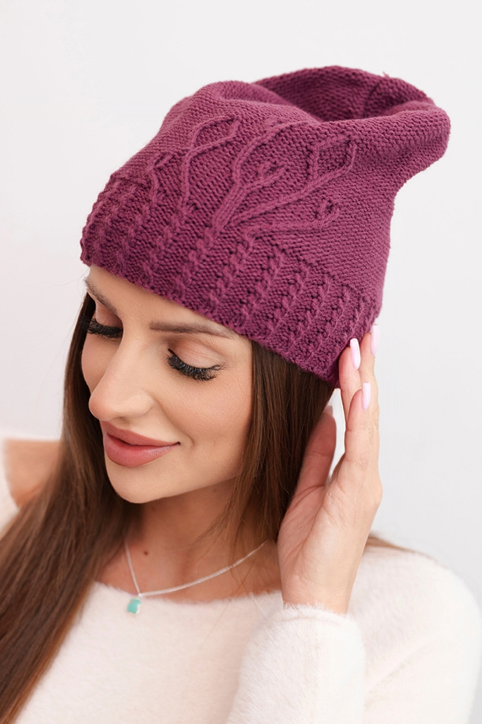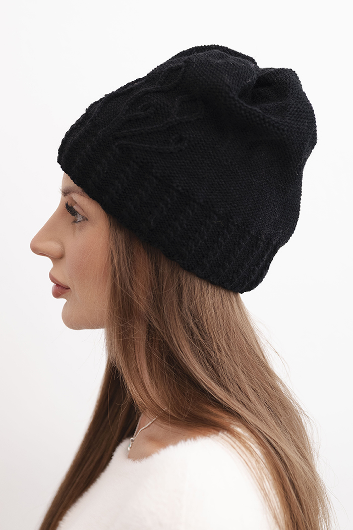 Czapka damska zimowa wełniana z ozdobnym tłoczeniem K474 czarna