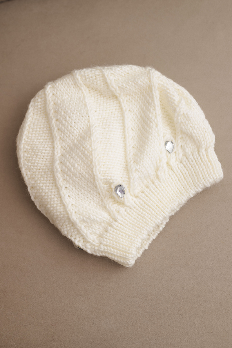 Czapka damska zimowa wełniana z ozdobnymi kryształkami K461 biała