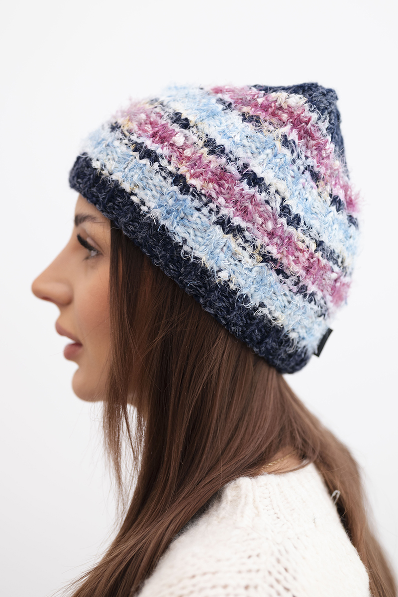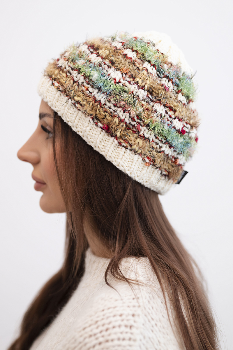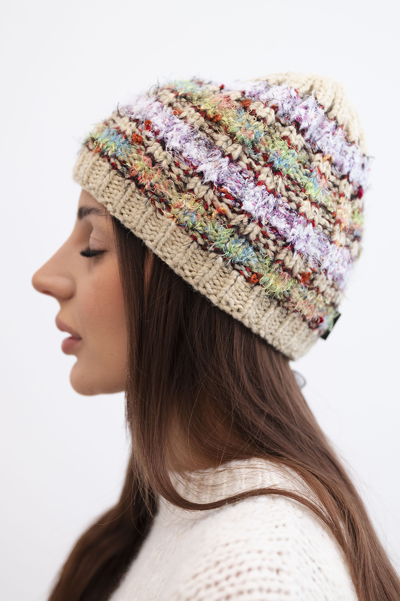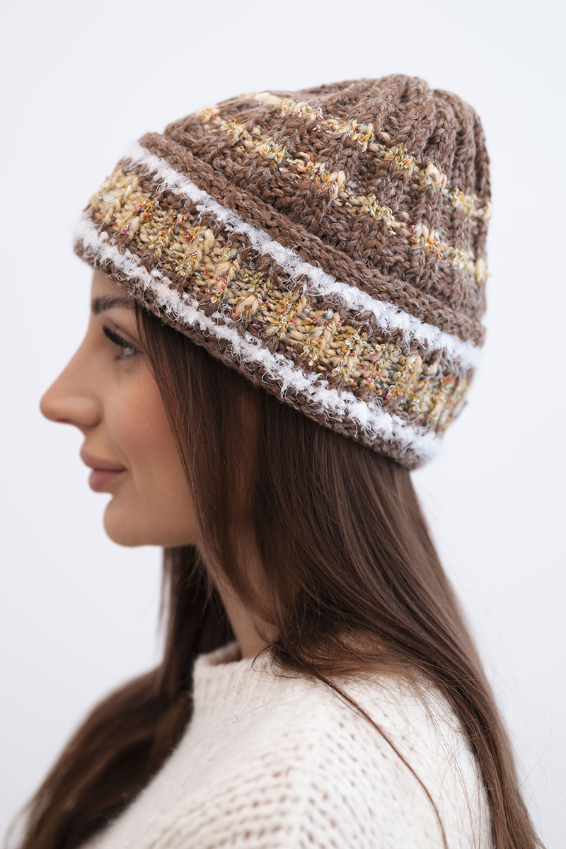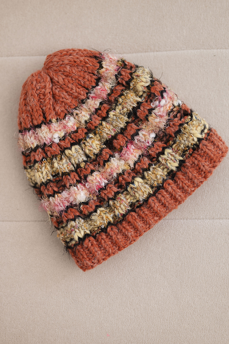 Czapka damska zimowa z kolorową przędzą i elastycznym ściągaczem K352 ruda
