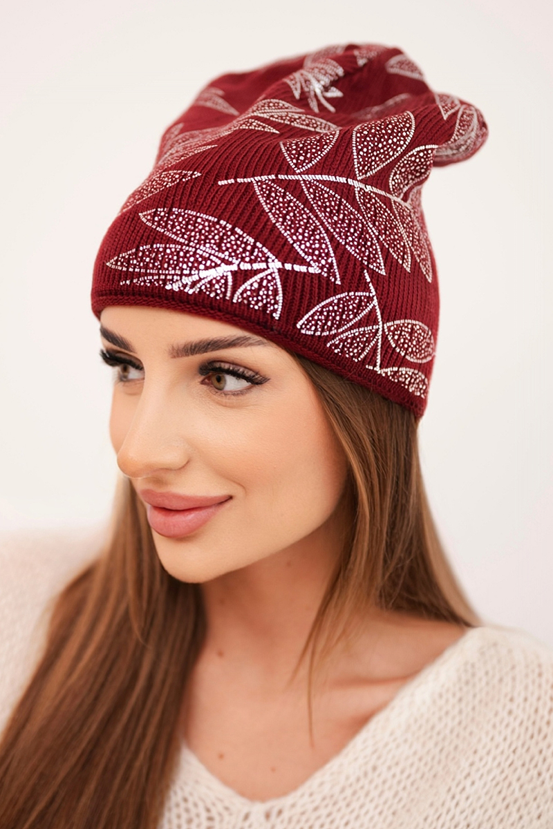 Czapka damska zimowa z moherem i połyskującym wzorem K502 miętowa