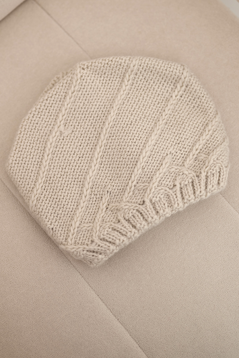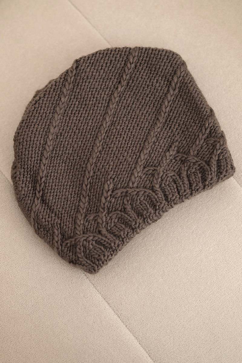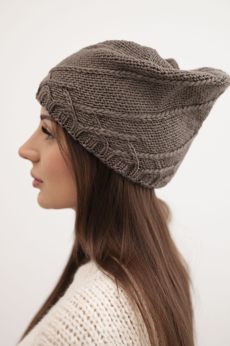 Czapka damska zimowa z ozdobnym splotem i klasycznym fasonem K372 cappuccino