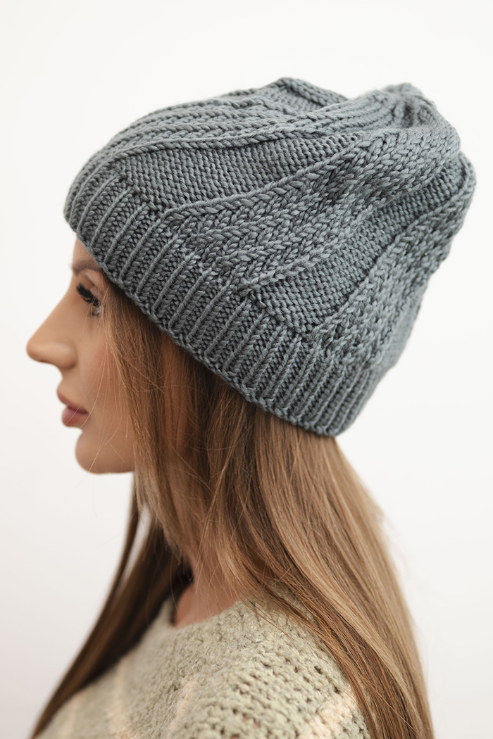 Czapka damska zimowa z wełną grafitowa