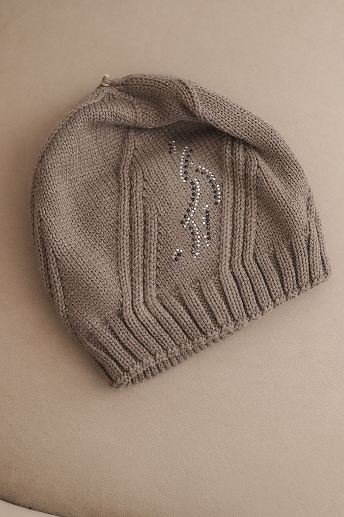 Czapka damska zimowa z wełną i zdobieniem z dżetów K480 czarna