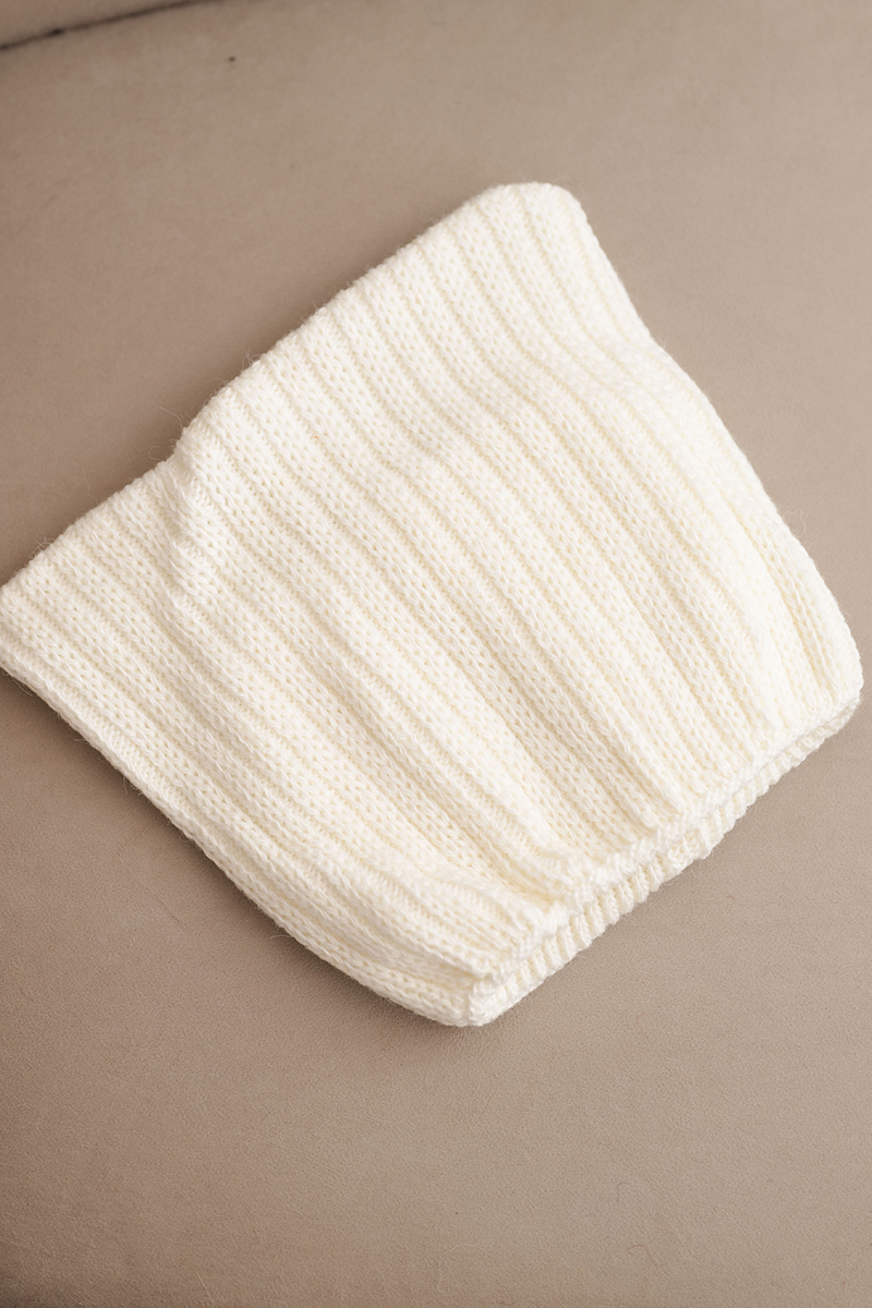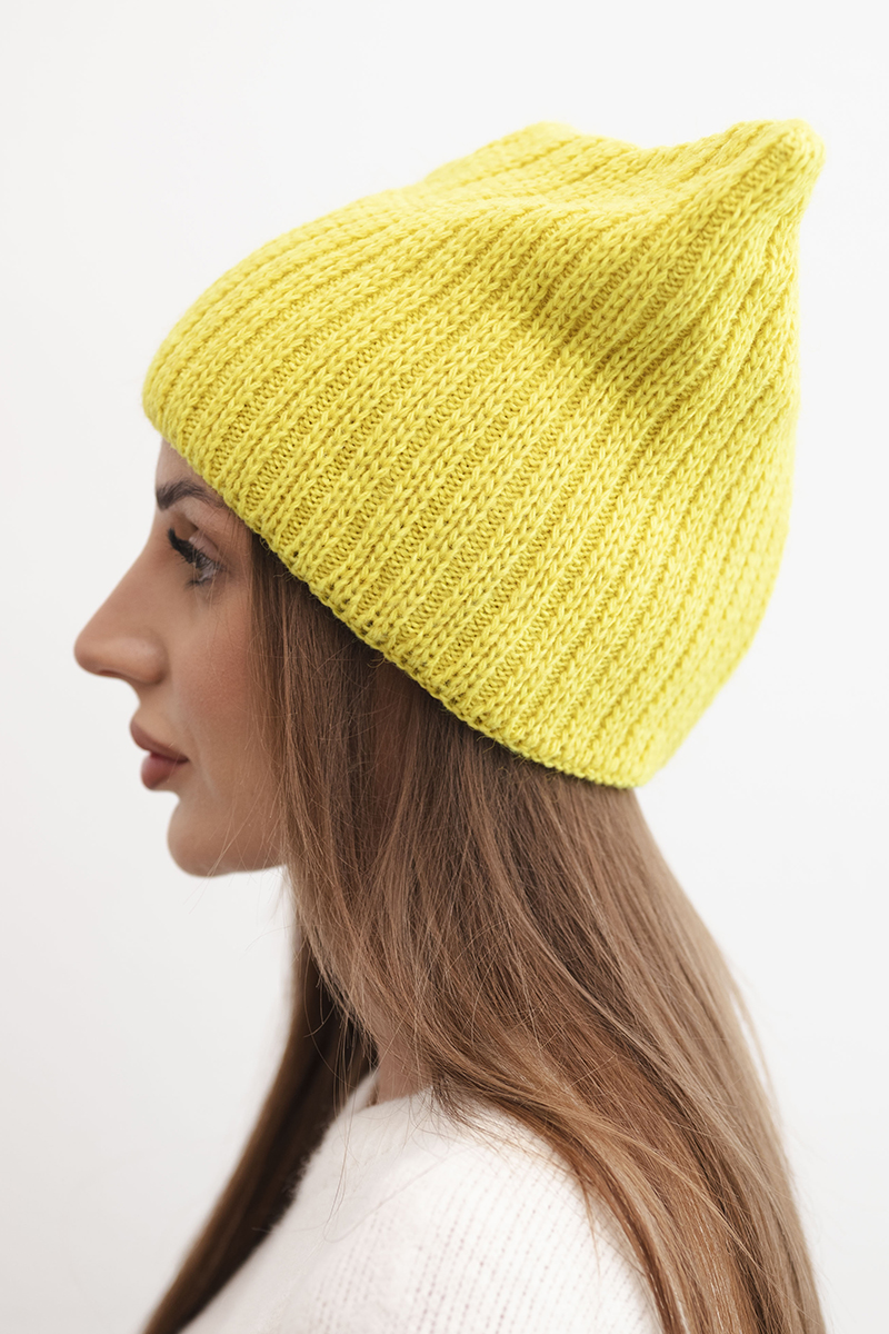 Czapka damska zimowa z wełną o prążkowanym splocie K471 ecru