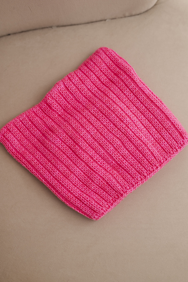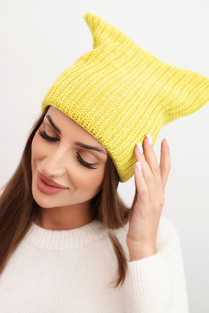 Czapka damska zimowa z wełną o kocim fasonie z prążkowanej dzianiny K419 różowa