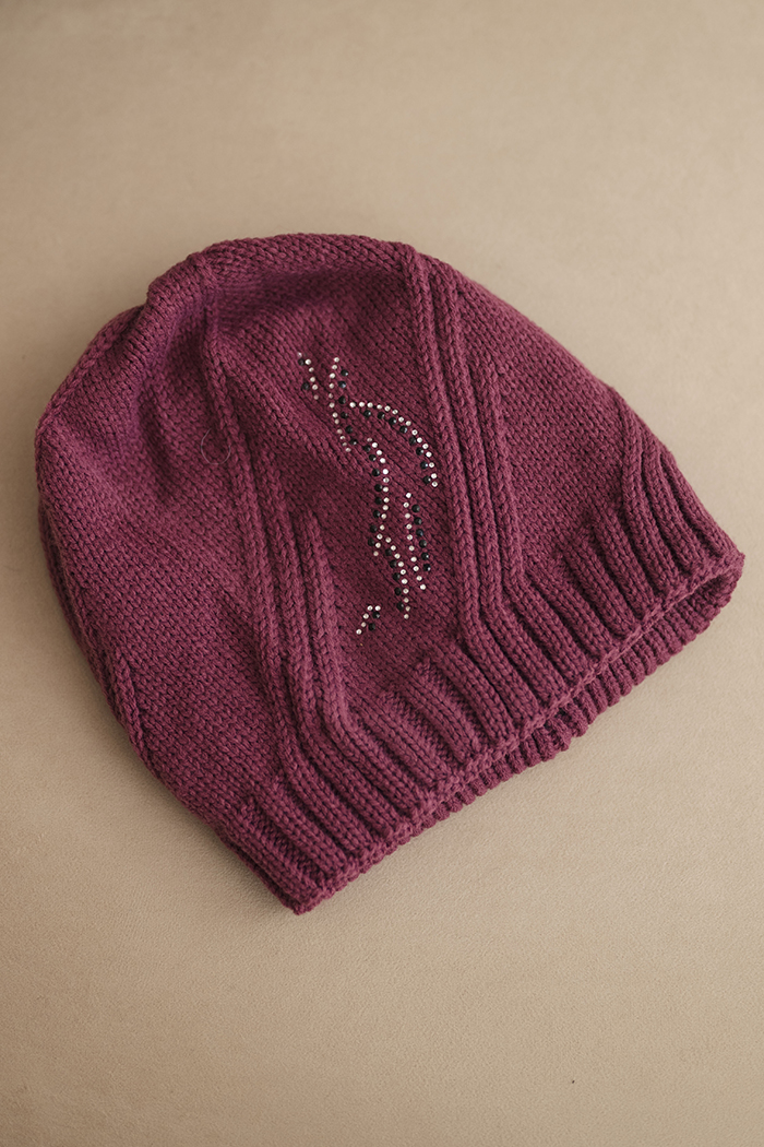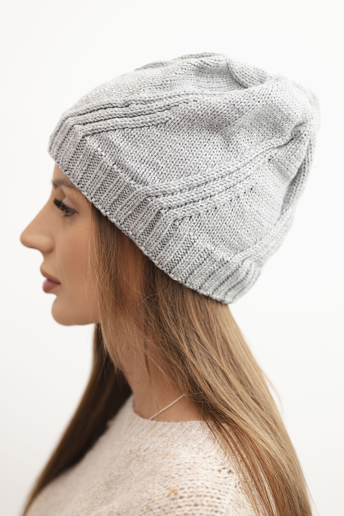 Czapka damska zimowa z wełną o luźnym kroju K442 grafitowa