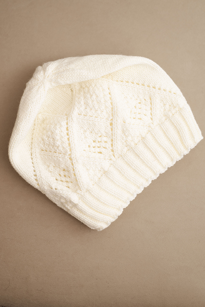 Czapka damska zimowa z wełny i z wzorem geometrycznym K479 ecru
