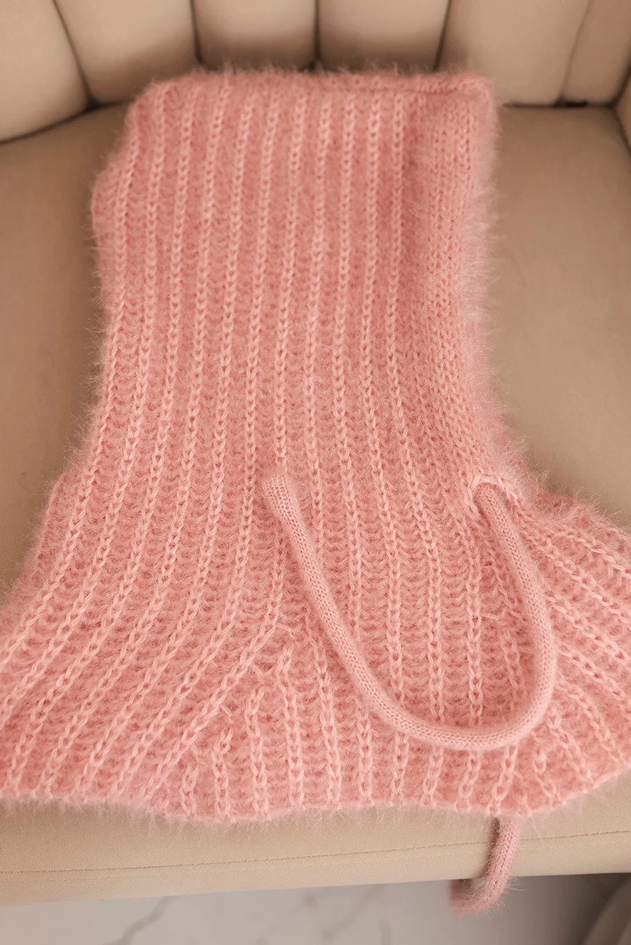 Sweter damski z moheru z bufiastymi rękawami ecru