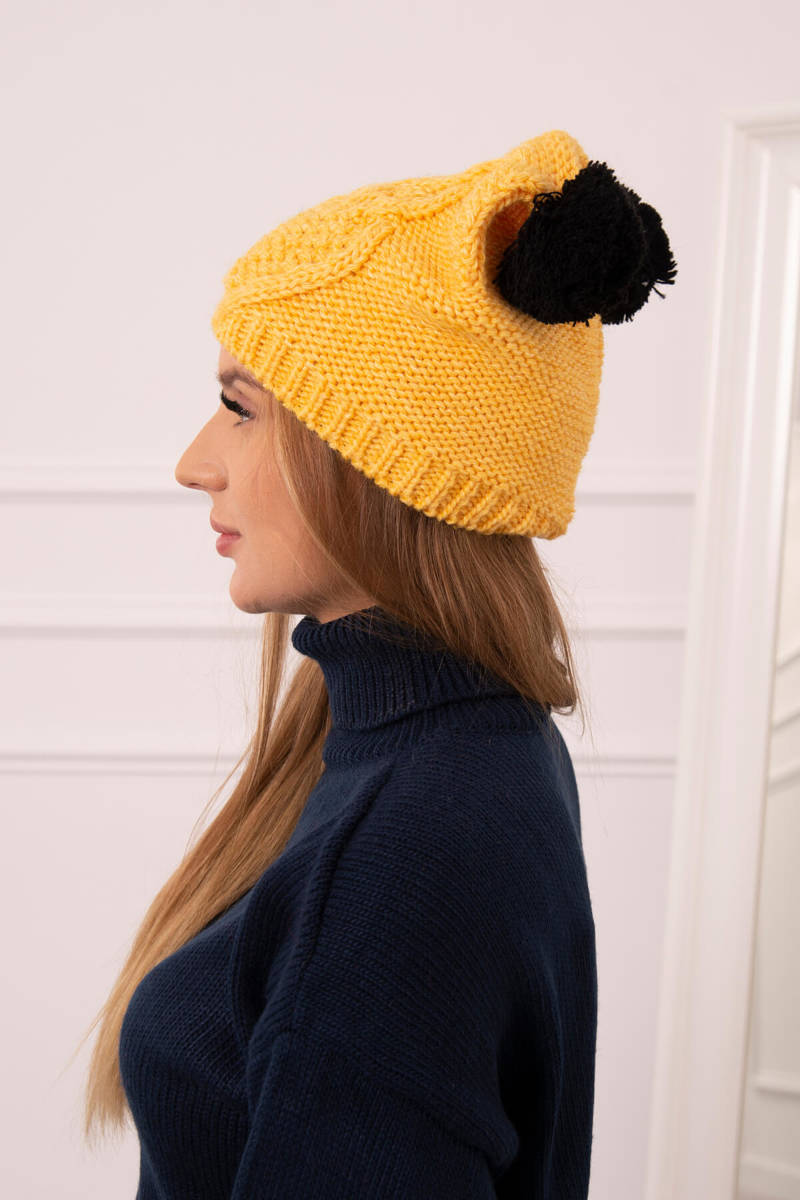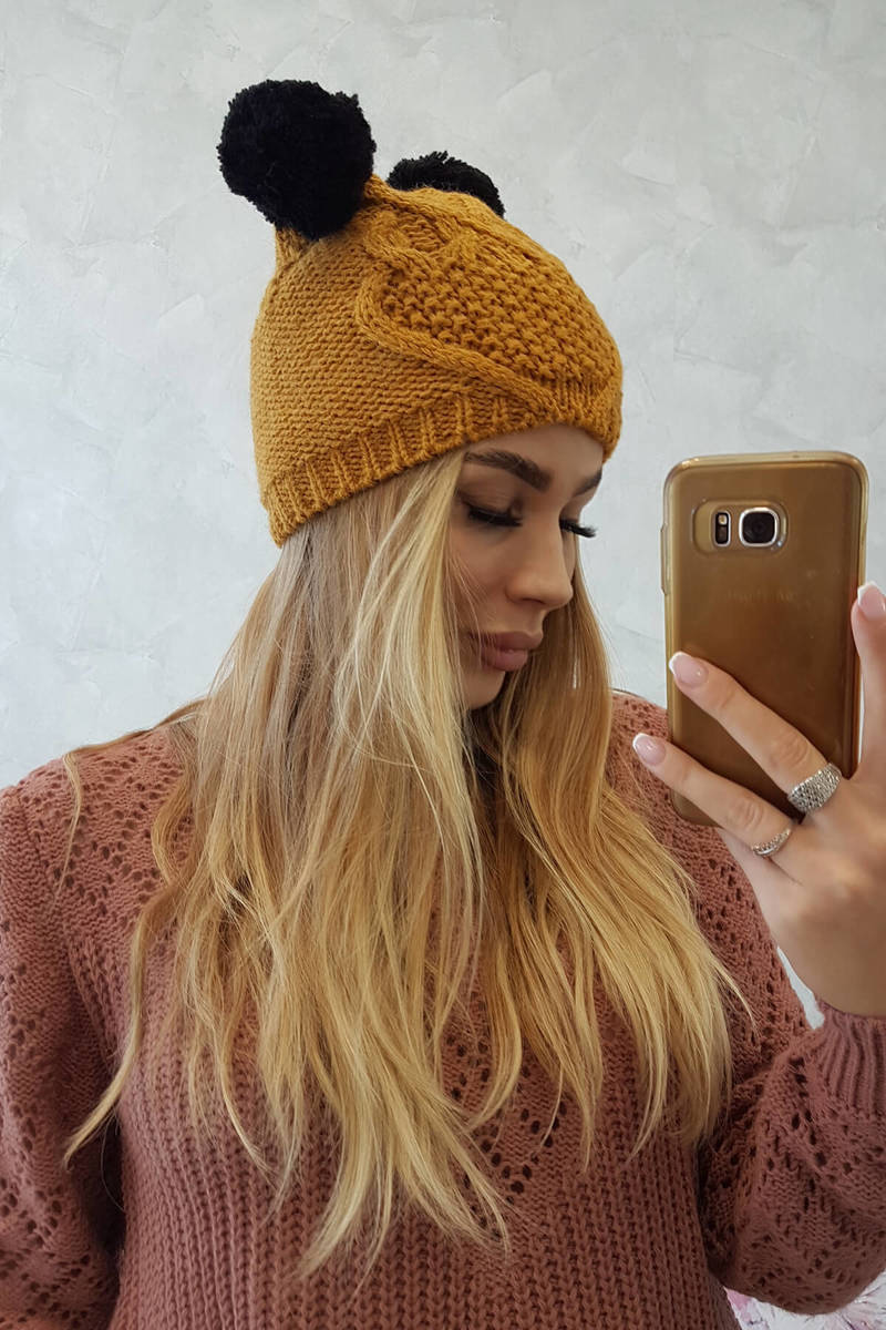 Czapka z polarem 2 pompony K291 musztardowa