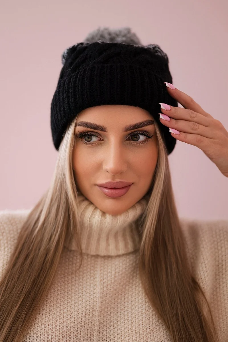 Czapka z polarem Ilona K218 fioletowy+biały